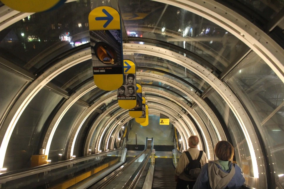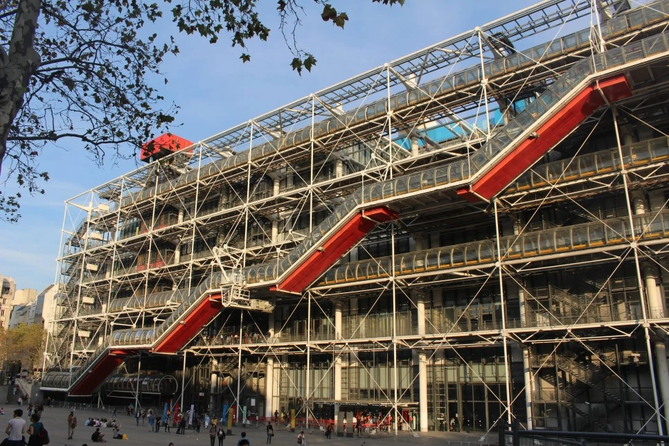 그것도 내부에 있어야 할 프레임들이 외부에 노출된 구조로 전기, 수도관, 공조관, 철근이 그대로 눈에 들어온다. 특히 에스컬레이터가 투명한 유리관 속에 설치돼 있어 바깥에서 보면 마치 놀이기구를 타는 것처럼 보인다.