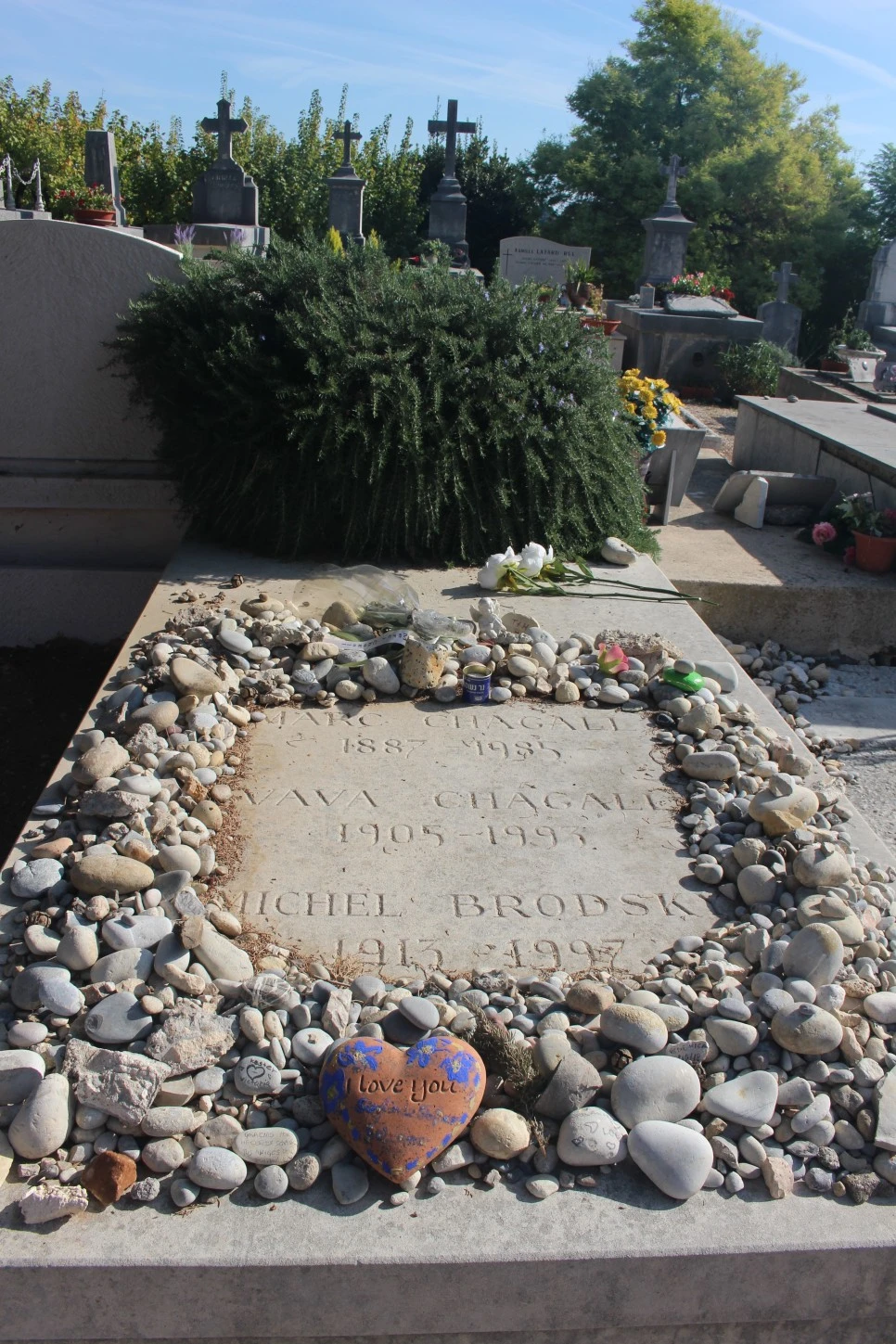 소소한 샤갈의 묘. 그를 회상하는 사람들이 작은 돌멩이를 올려놓았다.
