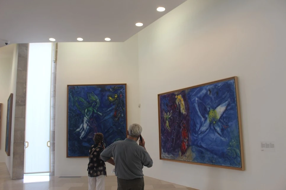 샤갈 박물관(Musée National Marc Chagall) 은 1966년 샤갈이 기증한 17점 작품을 시작으로 하여, 현재 약 400여 점을 보관, 전시 중이다. 오디토리움 메인 홀의 '성서 이야기'란 주제로 12점의 종교화가 전시돼 있으며, 전시관 안쪽의 스테인드글라스인 '메츠 대성당의 장미창' 이 볼거리이다.