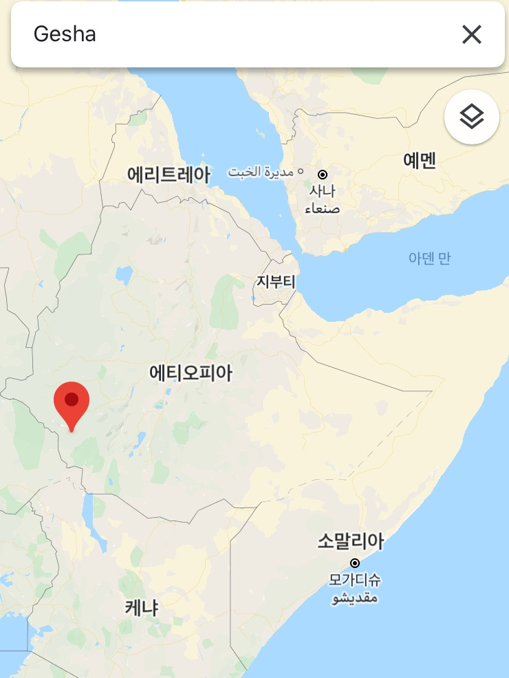 게이샤(Geisha)는 커피 품종 중 하나이다. 이 품종이 발견된 에티오피아의 마을 이름을 따서 지었다고 한다. 아래 이미지에서 보듯이 구글 지도로 검색을 할 때는 Gesha라고 해야 나오는 곳인데 에티오피아의 여러 부족 언어들의 발음이 조금씩 달라서 게샤(Gesha)라고 표기되기도 하지만 대부분은 게이샤(Geisha)로 불린다.
