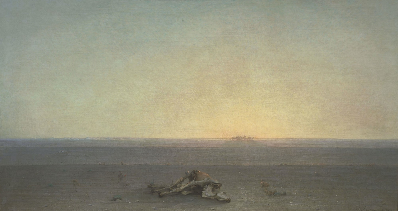 작품 <사하라 사막>에는 광활하게 펼쳐진 삭막한 사막과 그 자연 앞에서 비극적 죽음을 맞이한 동물 그리고 멀리 보이는 신기루인지 진짜인지 구분이 힘든 오아시스가 보인다. 기요메의 스토리를 토대로 우리는 이 작품을 "자연의 앞에서 한 없이 작아지는 우리들"을 표현하고자 했던 것을 알 수 있다. 이 작품에 대해 비평가 테오필 고티에는 "다른 어떤 작품도 이것만큼 사막이라는 무한한 자연을 간결하고도 숭고하며 감동적으로 그려내지 못했다." 고 말했다.