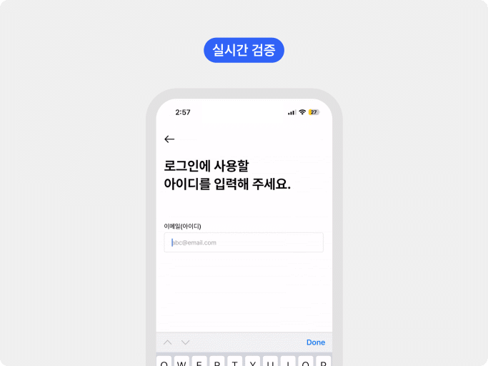 사용자가 입력하는 동안 실시간으로 검증해 즉시 피드백을 제공하는 방식입니다.
