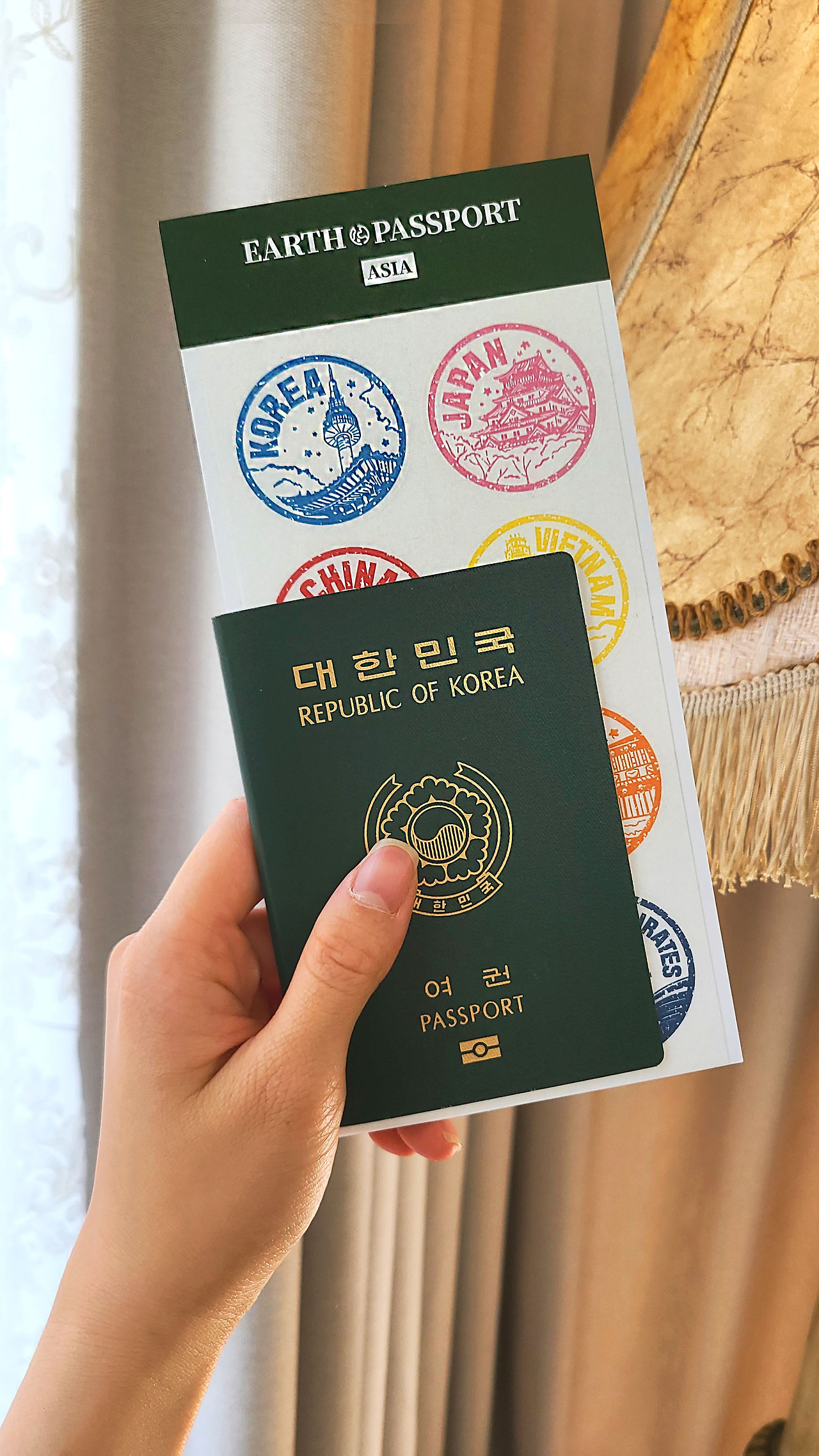 "이런 건 그냥 사은품으로 껴줘야 되는 거야. 예를 들어, 여권 케이스를 팔면서 케이스 사면 하나씩 끼워주는 거지. 그럼 사람들이 좋아하지. 여행 좋아하는 사람들이 여권 케이스를 살 거니까. 그러면서 스티커도 공짜로 주면 좋아하지."