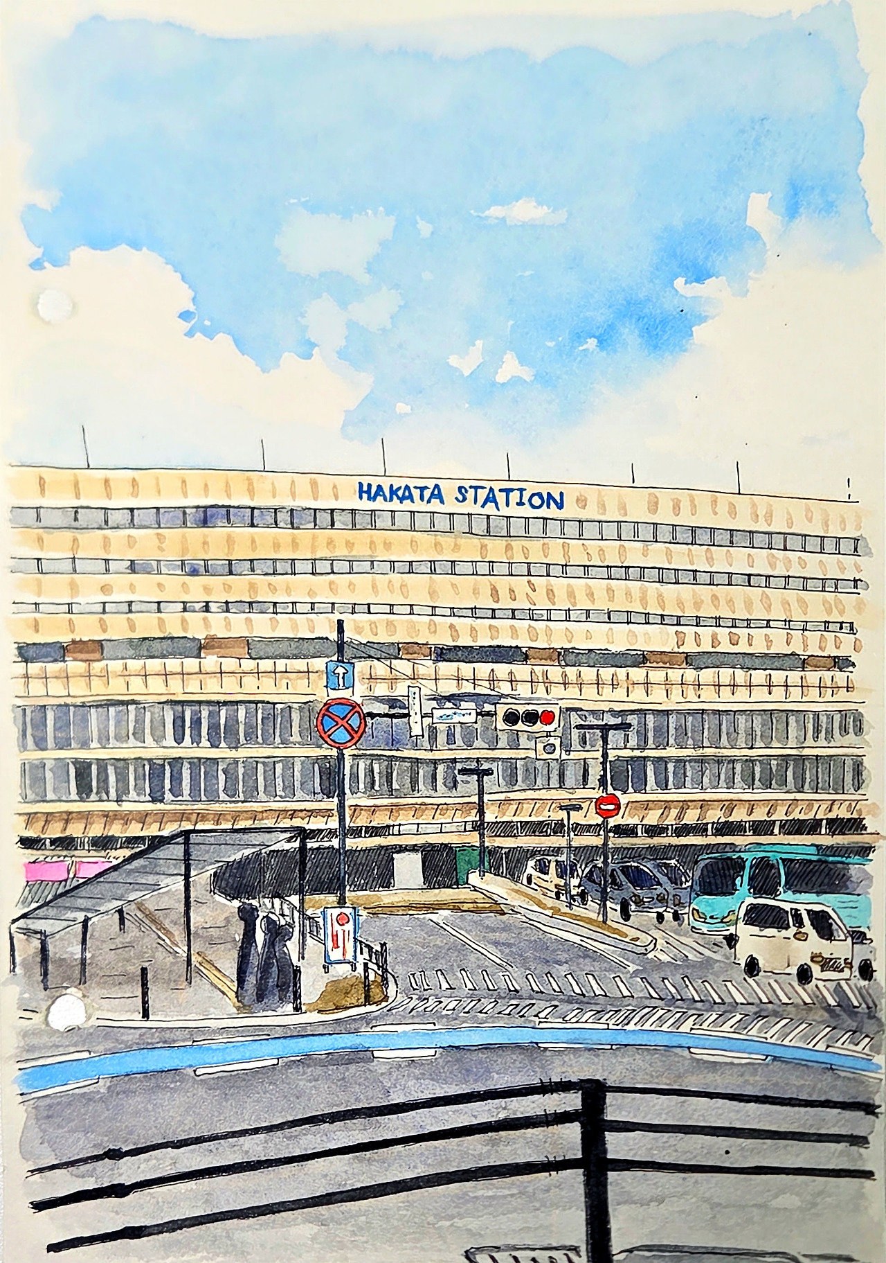 지하에서 올라와 하카타역을 나왔다. 하카타 역은 분당 서현역과 마찬가지로 쇼핑몰이 있고, 양쪽으로 출구가 뻥 뚫린 큰 역이다. 한쪽은 넓은 시내 방향, 반대쪽은 택시 탑승장과 호텔들이 있다. 현수막, 간판, 홍보물이 동글동글하거나 거친 형태의 일본어와 한자로 도배된 것을 보니 정말 일본에 온 것이 실감 났다. 정말 다른 나라에 왔다는 느낌에 신이 났다.