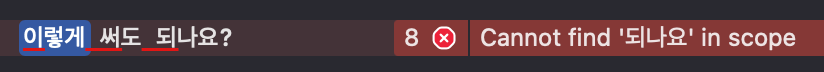 위의 이미지처럼 문법에 맞지 않게 사용하게 되면 바로 해당 코드에 빨간색으로 에러임을 표시해 주기 때문에 '아! 이렇게 하면 안 되는구나' , '내가 잘 못썼구나'라고 생각하고 빠르게 수정할 수 있습니다.