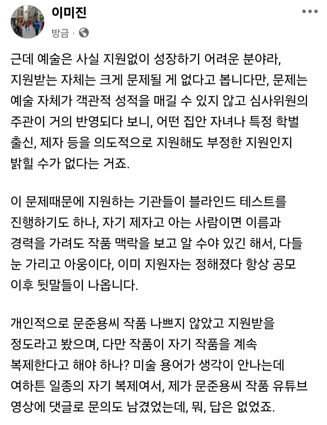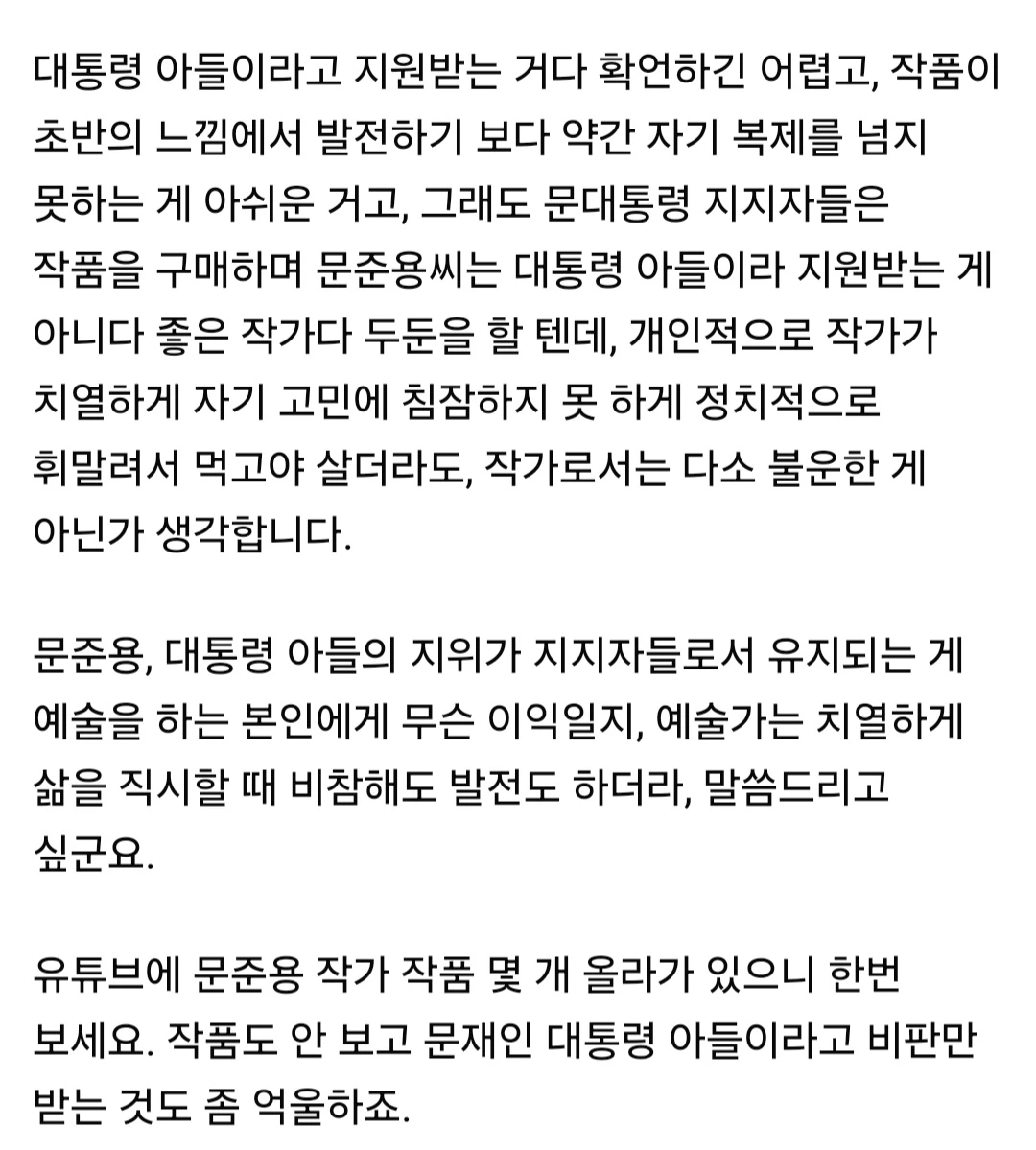 정치적으로 지지를 받아 버티는 게 예술가에게 이익일까