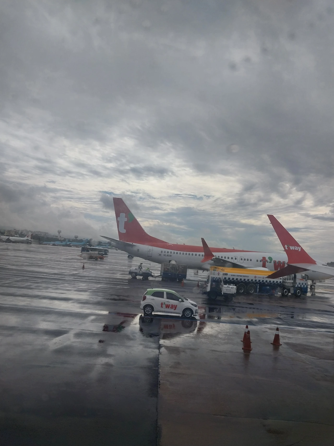 제주도로 들어가기 전 비행기에서 촬영한 제주도 하늘 모습입니다. 멀리서 봤을 때 <왜 저기만 구름이 몰려있지?> 생각했는데, 바로 아래가 제주도더라고요. 저렇게 제주도 상공에만 구름이 잔뜩 몰려있다면, 제주도에 비가 오고 있겠구나, 생각했는데, 비행기에서 내리니 진짜로 비가 오고 있더군요.