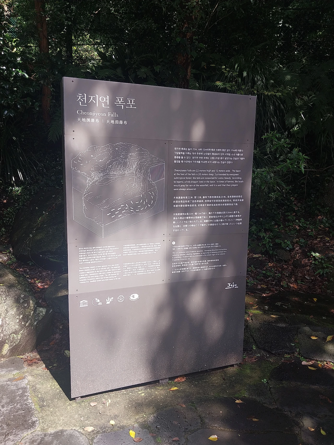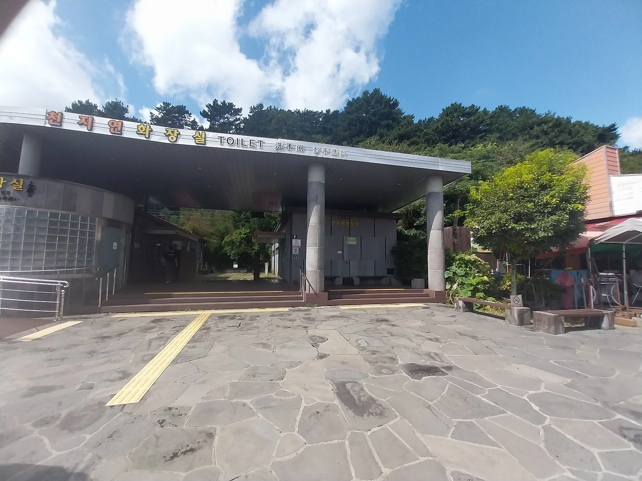 천지연과 천제연은 각기 다른 폭포로, 천지연은 비교적 가깝고 금방 걸어갈 수 있지만, 천제연은 천지연보다 크고 여러 겹(?) 폭포인 반면 걸어가면 꽤 거리와 난도가 있다고 해, 천지연으로 갔고요. 천지연 입구의 화장실도 역시 제주도 가옥에서 보이던 기둥이 있어, 화장실은 촬영하지 않는데, 촬영해 올립니다.