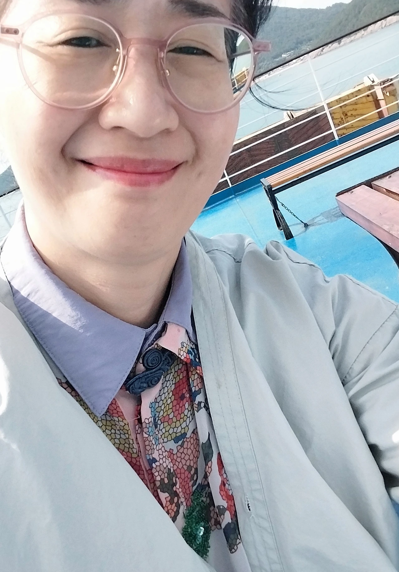배 위로 나와 바다도 한번 보고, 눈이 부셔 도저히 떠지지 않는 눈을 게슴츠레 떠가며, 인증숏 올립니다. 빛을 받고 찍으니 사진이 그나마 깨끗하게 나온 듯합니다. 그리고 제가 각도에 따라 약간 통통하고 부드럽게도 나오고, 좀 중성적(?)으로도 나오는 것도 같고요.