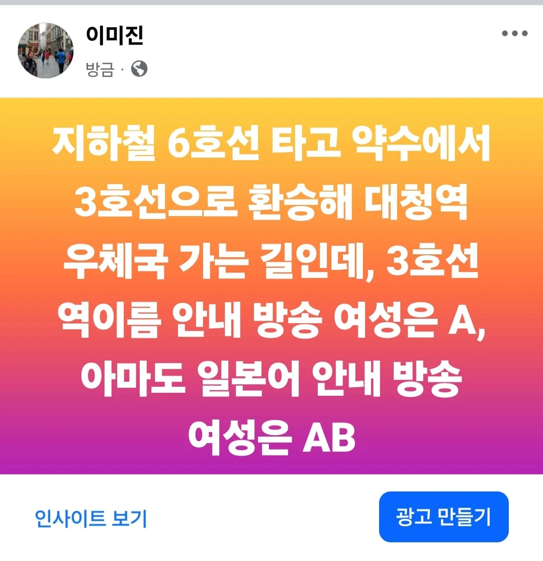지하철 3호선 타고 우체국 갔다 법원 가는 일정