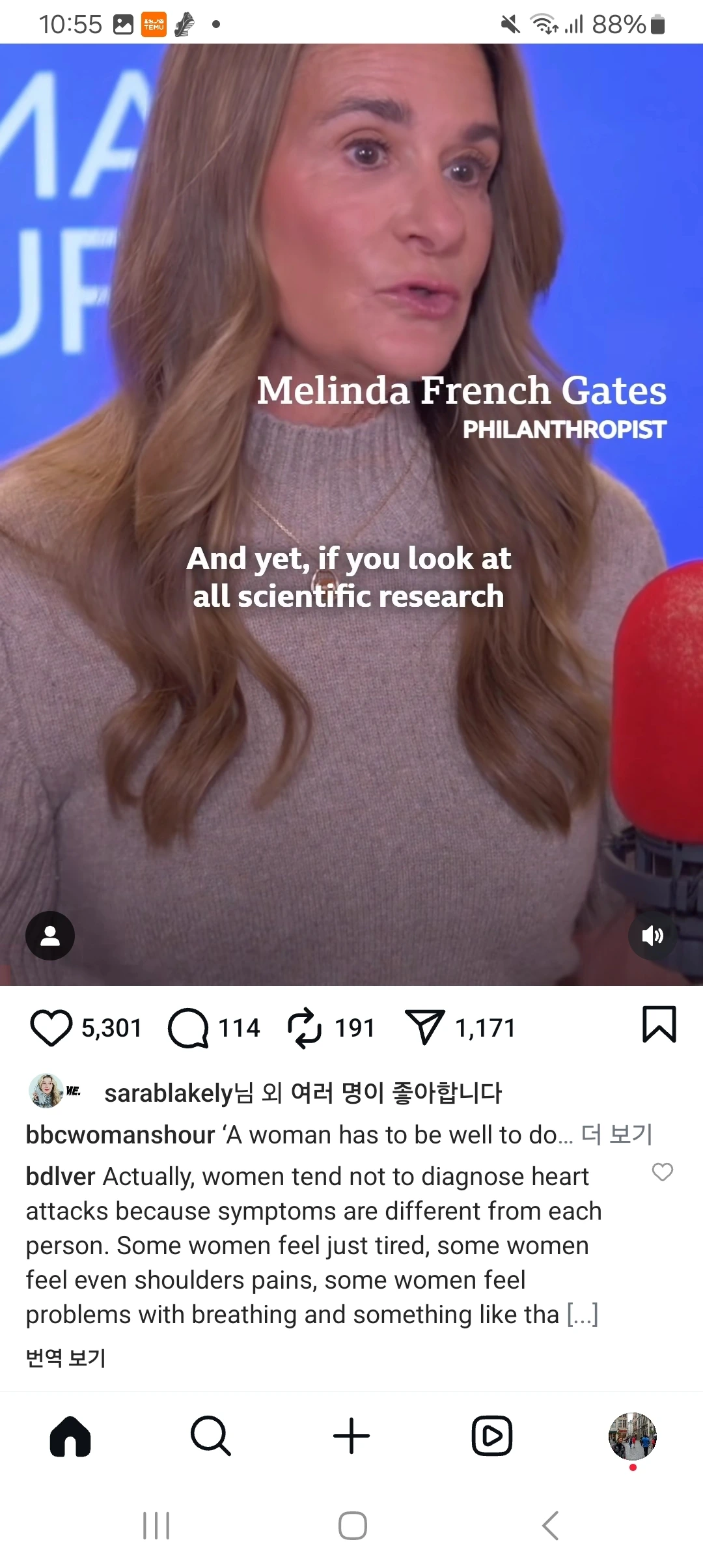 그나저나 빌 게이츠는 진짜 AB 더니, 멜린다는 B네요. 둘 다 서구에선 흔한 비율은 아닌데. 이 방송에 나온 여성 MC도 멜린다와 같은 B