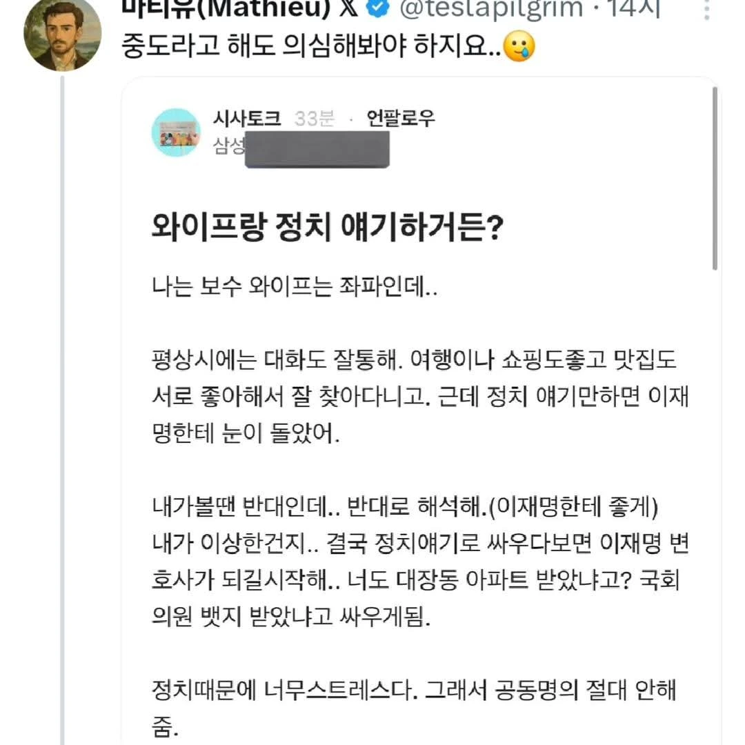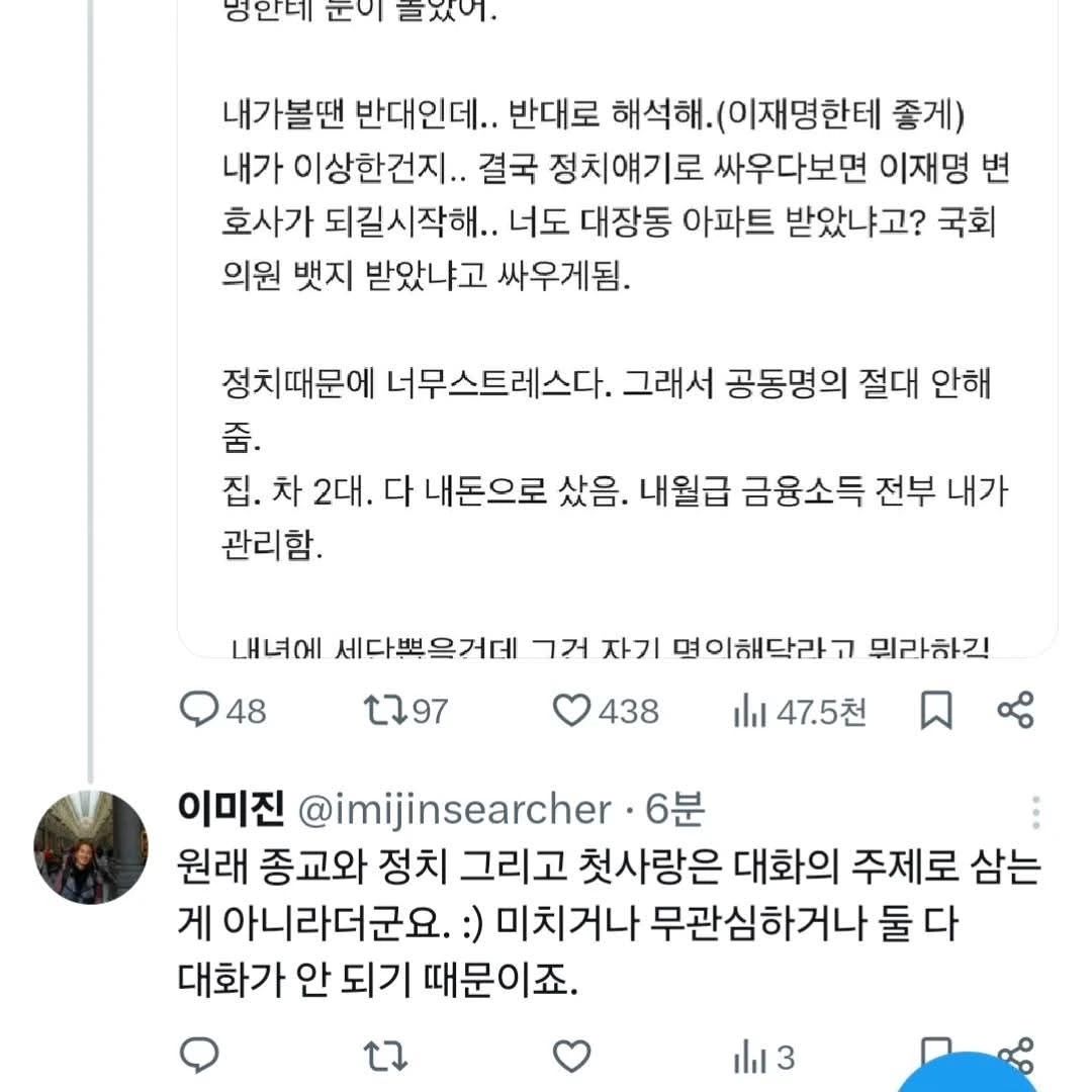 정치, 종교, 첫사랑은 미치거나 무지해서 대화하면 안된다네요