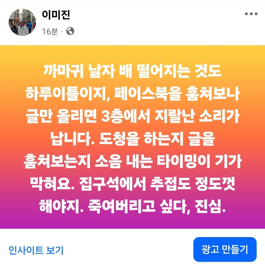 꼭 글 쓰거나 할 때마다 3층 소음이라니, 도청하남??