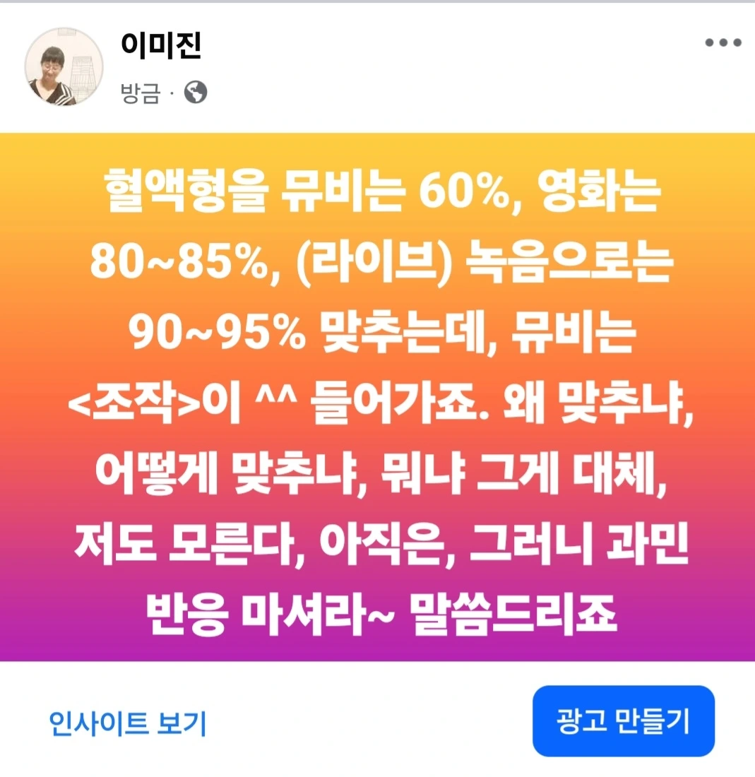 뮤비는 60%, 영화는 85%, 라이브 (녹음)은 95%~ 맞춤 예상