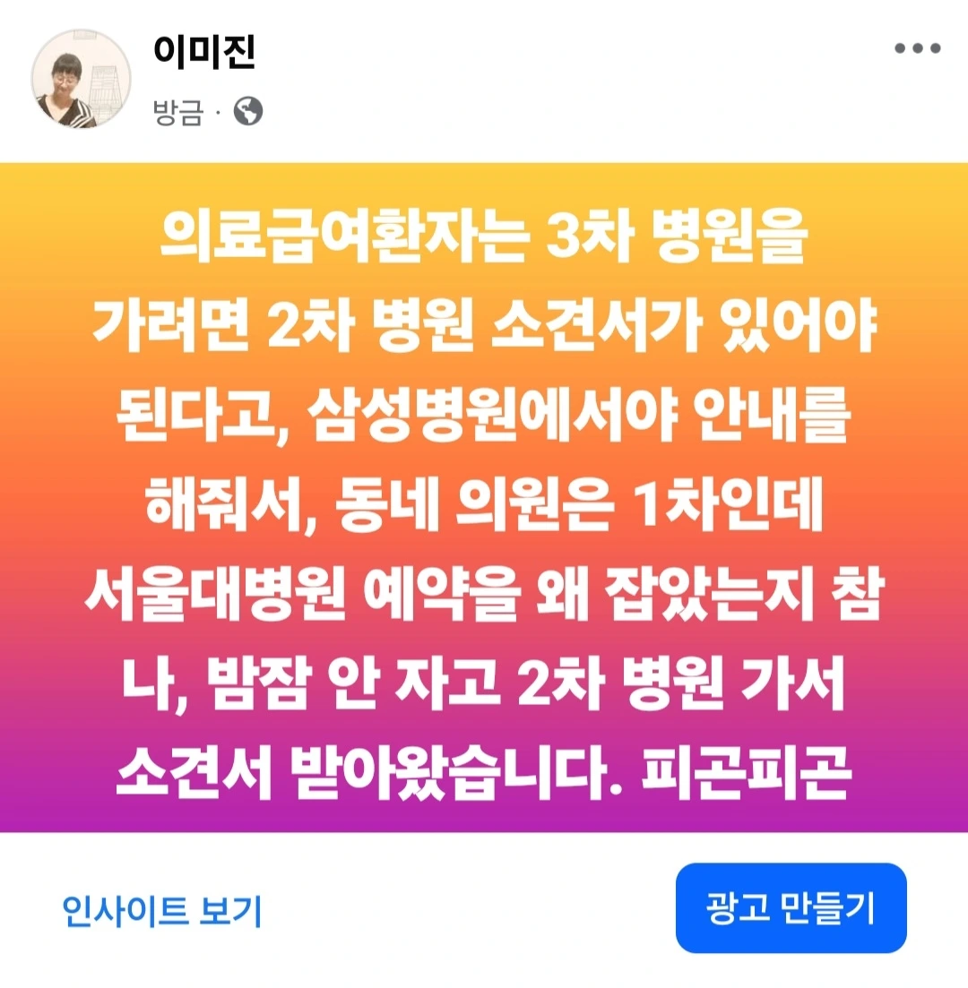밤 꼴딱 보내고 2차 병원 가서 소견서 받아 3차 병원 갑니다