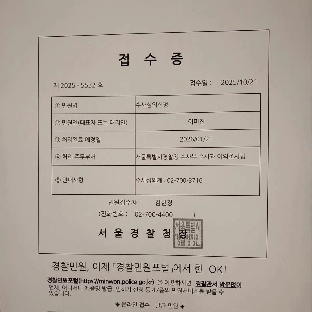 모친 사망 사건은 입건 전 종결이라 통상적 이의신청이 아닌 수사심의를 신청해야 되는데, 원 처분청인 도봉경찰서에 신청해도 되고, 경찰청 본청에 신청해도 된다면 경찰청 본청 신청이 낫죠. 도봉경찰서에서 입건도 안 한 사건을 재수사를 받겠습니까? 경찰청 본청이라고 뭐가 다르기야 하겠습니다만은.