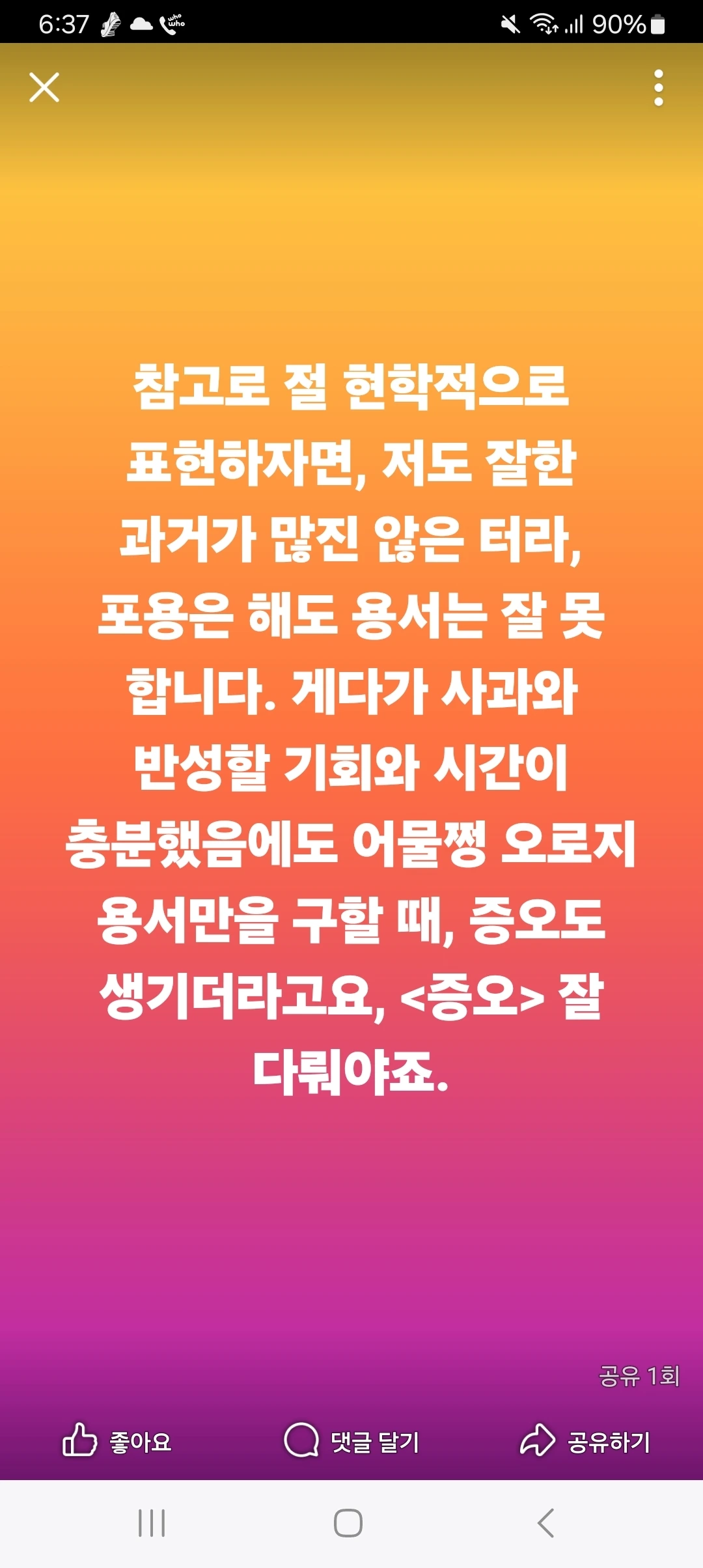 사과할 시간과 기회를 모두 놓치고 용서를 구하는 건 거짓이예요