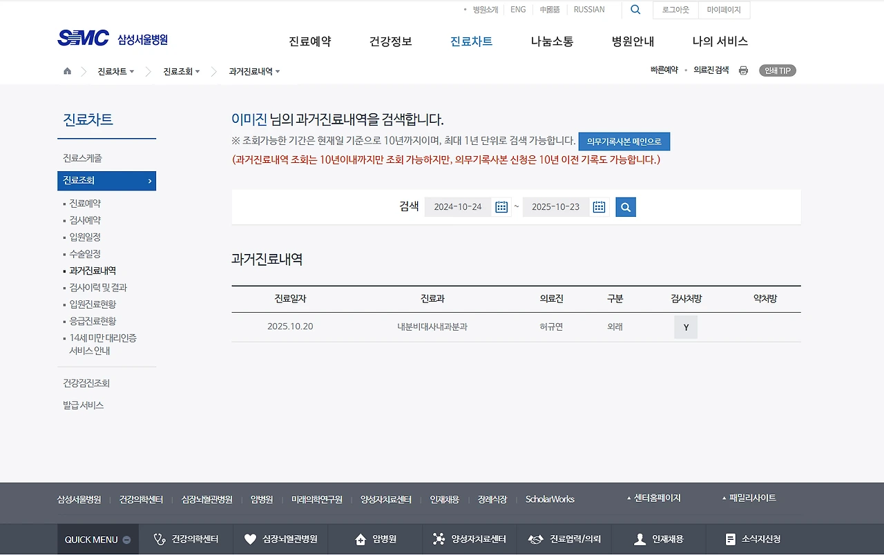 특정 호르몬 과다 분비로 말도 안되게 결혼도 안 한 제가 불임 증세에 시달리며, 안통, 두통, 단백질 저하, 우울 외 여러 문제가 있어 동네 내과에서 3차 진료를 권한 이후, 삼성서울병원이 진료날짜를 가장 빨리 잡아줘, 지난 10월 20일에 갔다 왔죠.