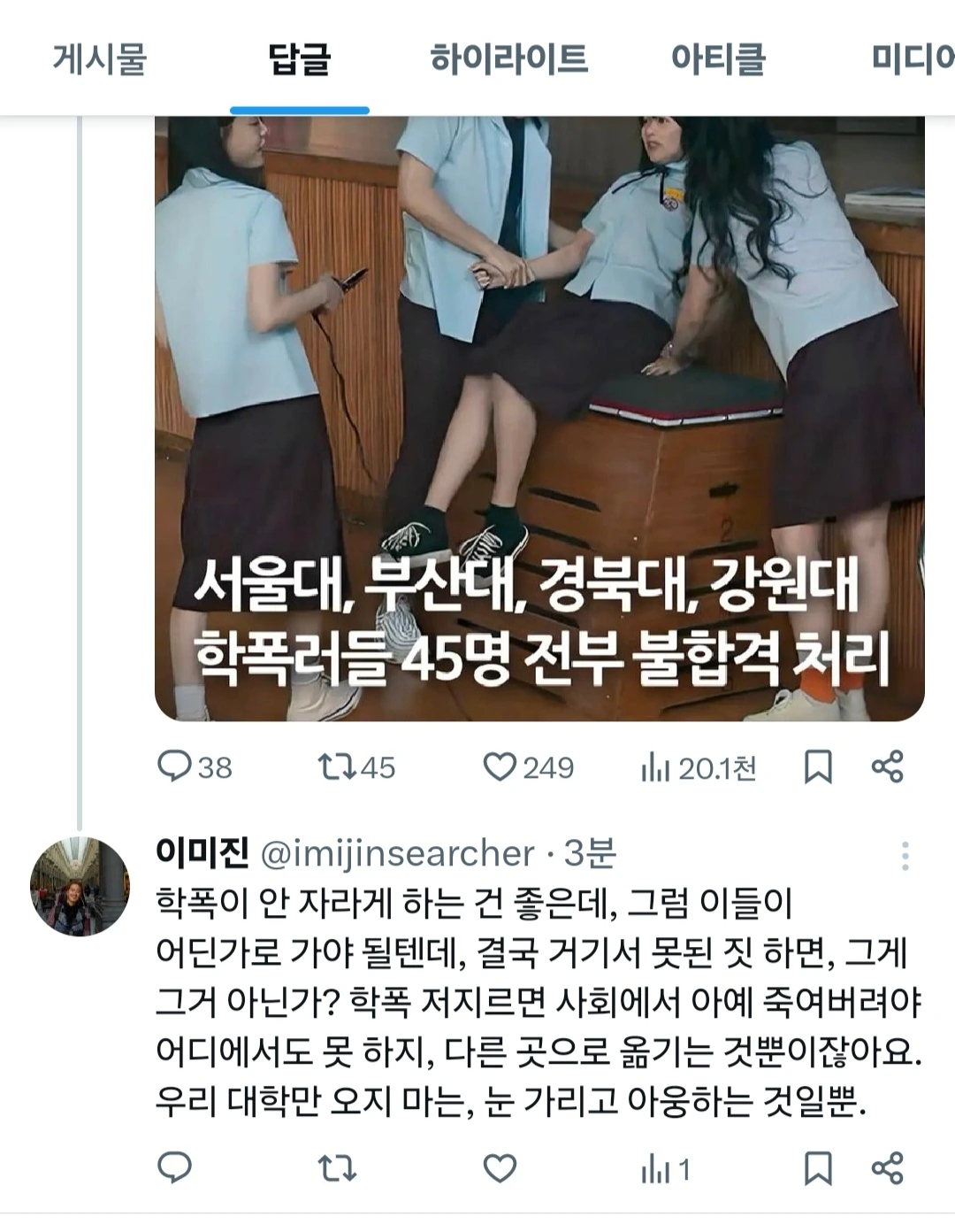 학폭으로 한국 대학 못 가면 어딘가로 가겠죠