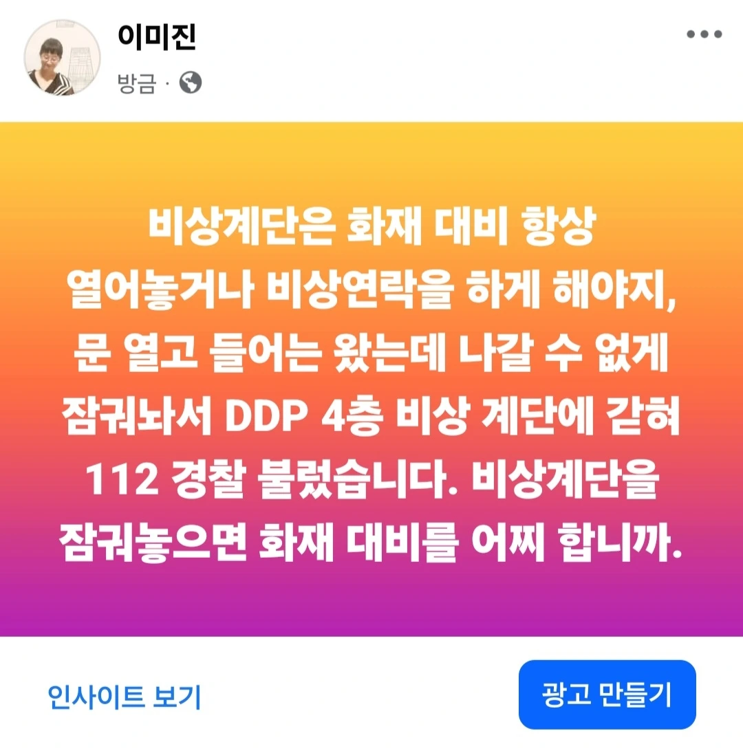 DDP 비상계단에 갇혀 112 경찰 신고했습니다