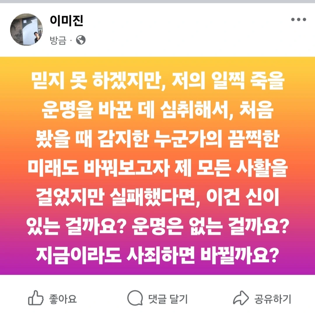 누군가의 미래를 바꾸는데 제 사활을 걸었지만 실패인듯