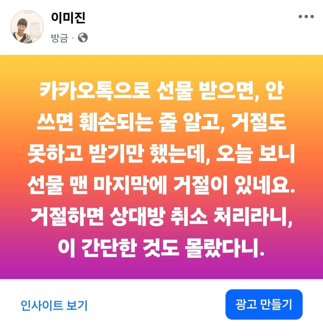 카카오톡 선물 거절하기가 있다는 걸 처음 알았음요