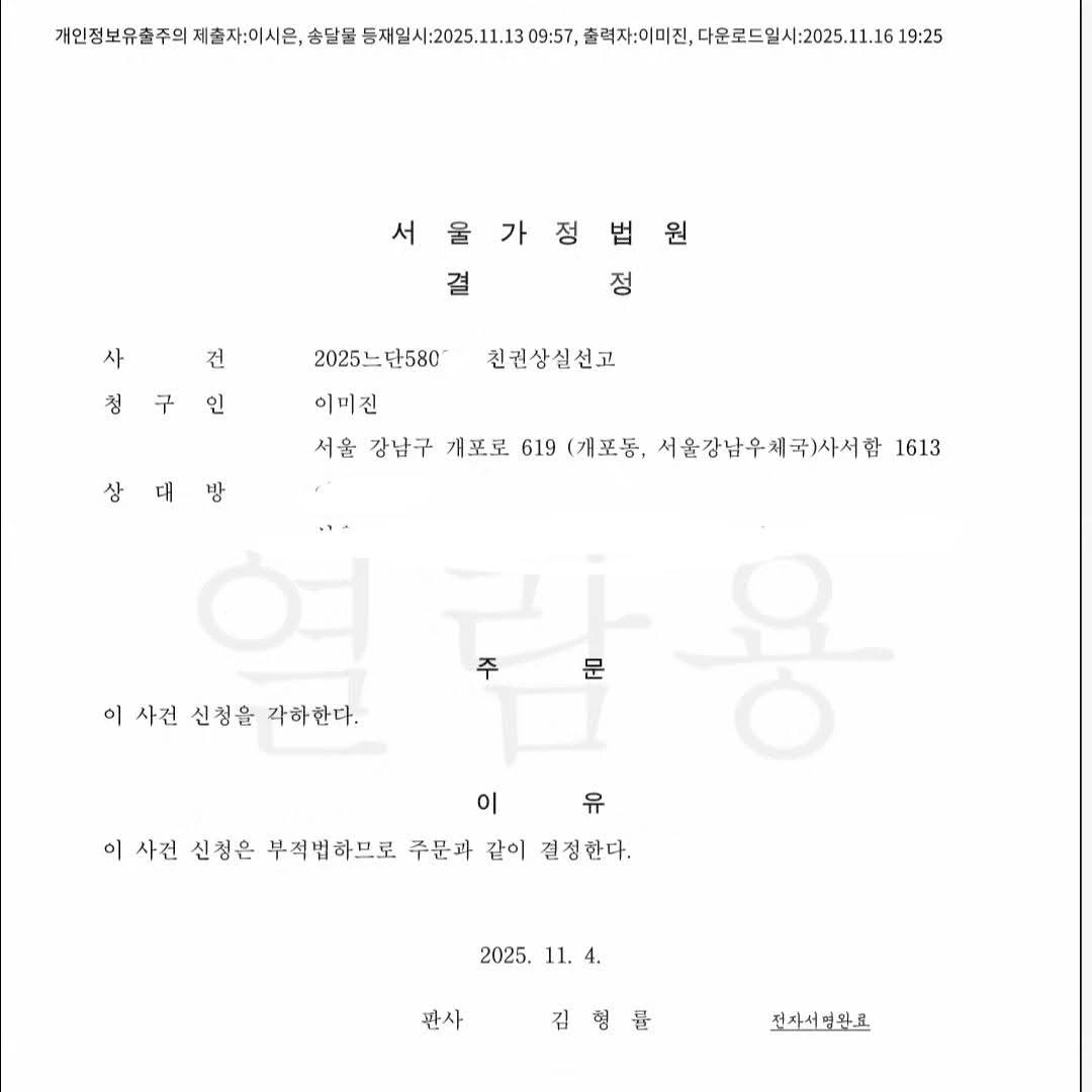 통상적으로 친권상실은 미성년의 자녀가 부모로부터 도움은커녕 학대 등 위험이 발생할 때 청구하는 것입니다만, 현재 정신건강 복지법 39조에는 정신질환자의 보호의무자가 민법 상의 부양의무자로 돼있어, 정신과를 다니는 저로서는 부친의 결정권을 제한하기 위해, 해당 청구를 했으나, 역시 각하입니다.