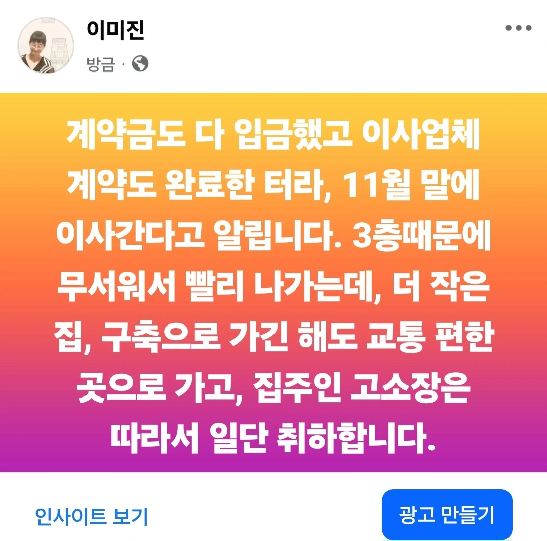 제가 이사를 나가야, 3층도 이사를 가서, (응? 갑자기 왜 제가 이사를 가야 본인도 이사를 간다고 물고 늘어지나 모르겠지만), 수리를 한다고, 임대인 입장이 일관되서, 급하게, 그래도 적법한 집으로 이사 갑니다.