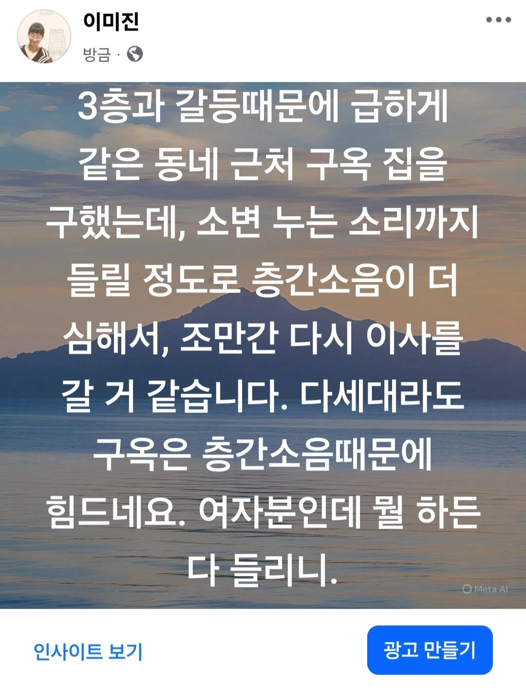 이사 온 집은 여성 소변 소리가 들릴 정도 소음임