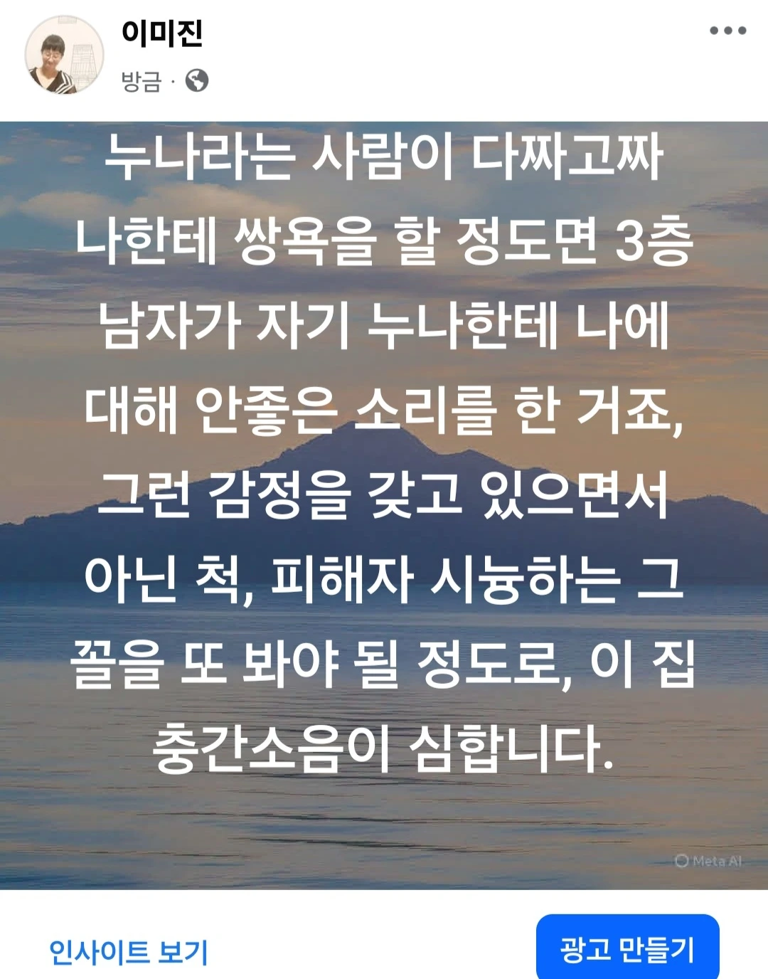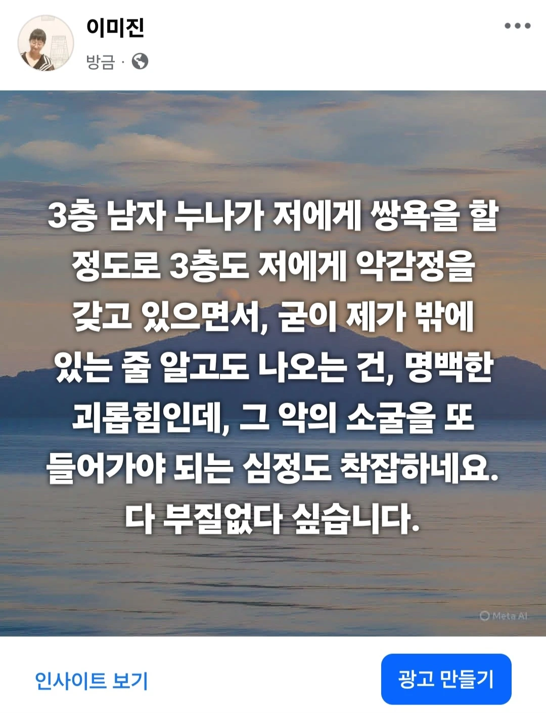 누나가 저에게 쌍욕할 정도의 악감정을 감춘 3층 남자