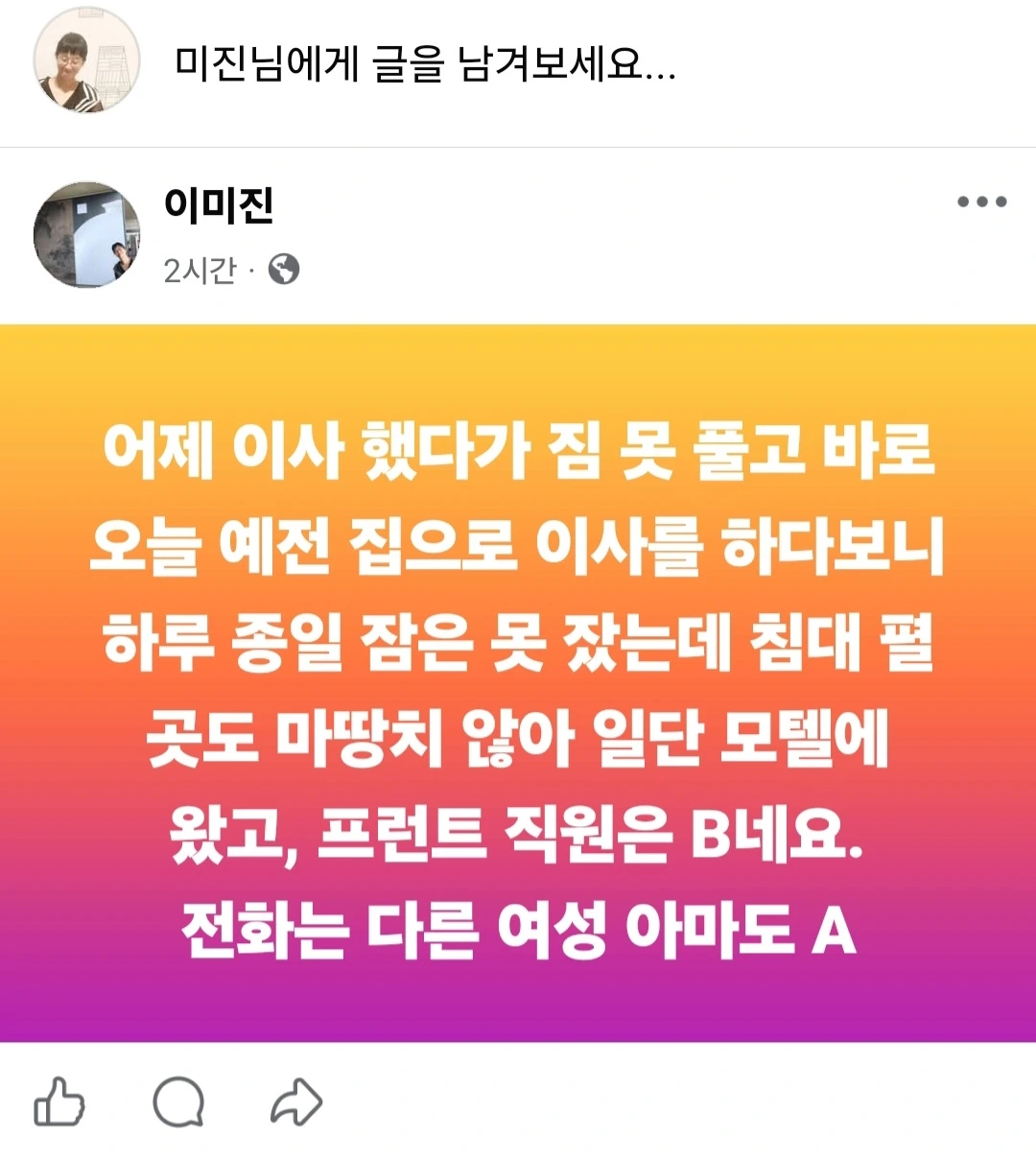 어제 이사하고 오늘 또 이사하고 결국 오늘 밤은 모텔
