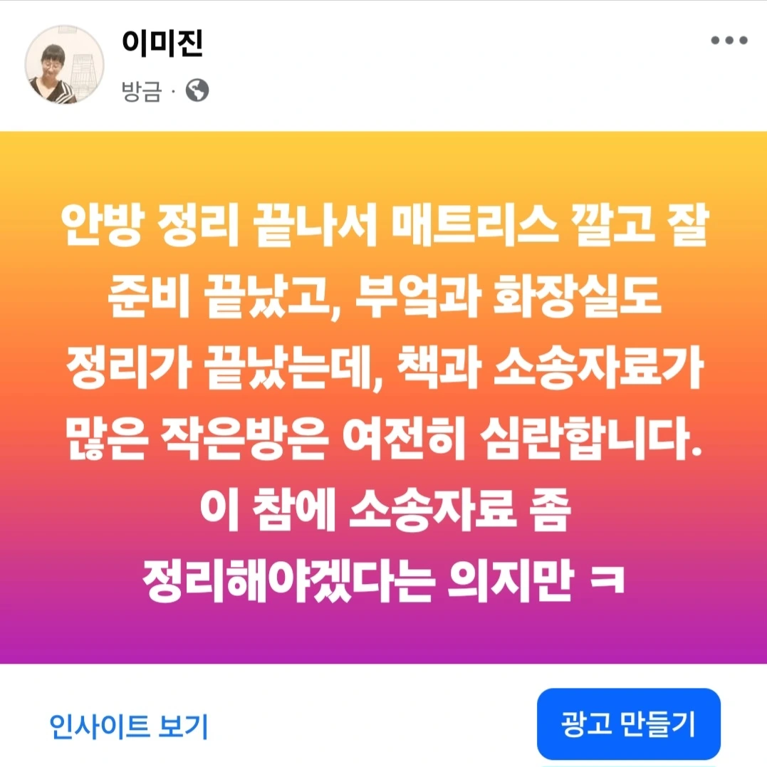 안방, 부엌 화장실 정리 끝났고 작은 방은 심란하고