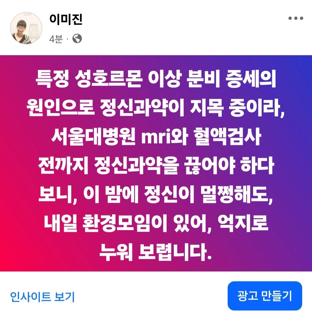 정신과 약을 며칠 끊어야 해서 불면증이 살아난 이 밤