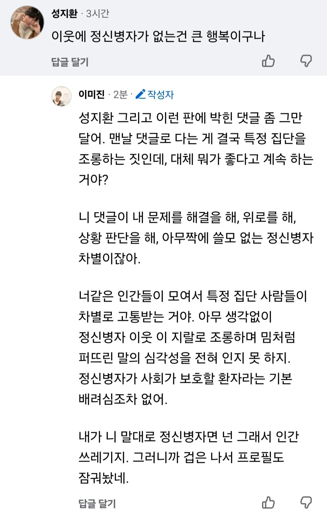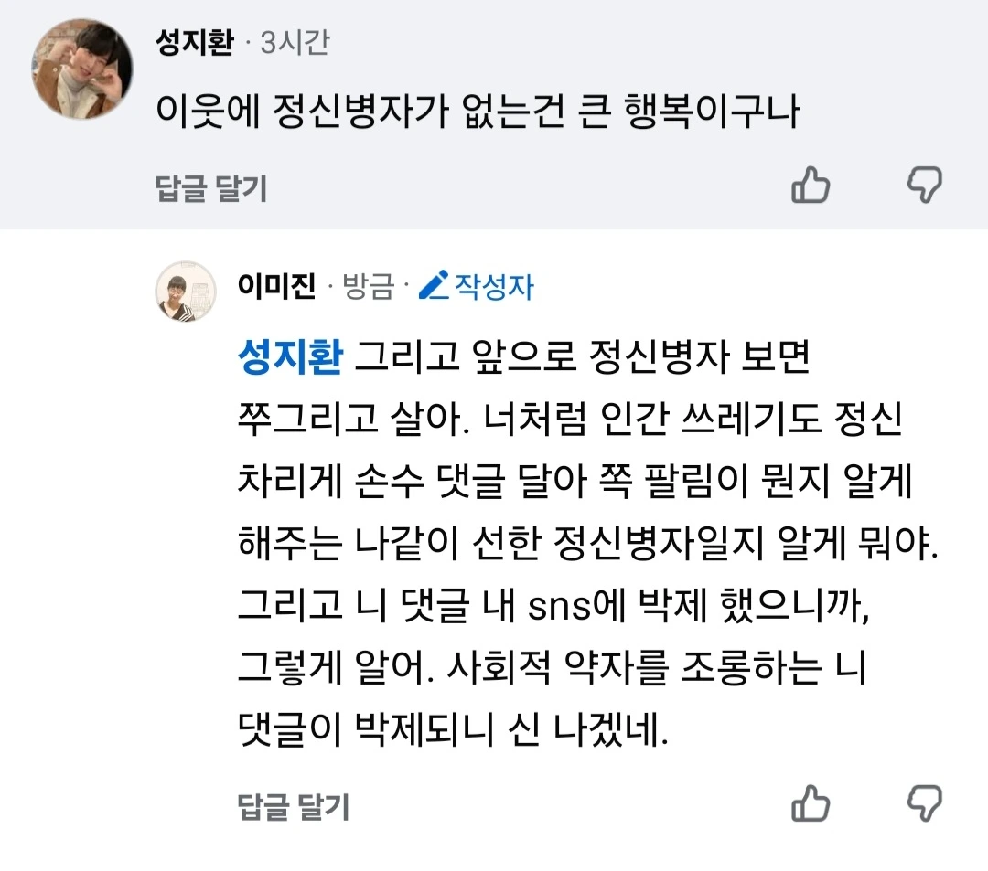 특정 사회적 약자를 조롱하고도 괜찮은 줄 아는 악플