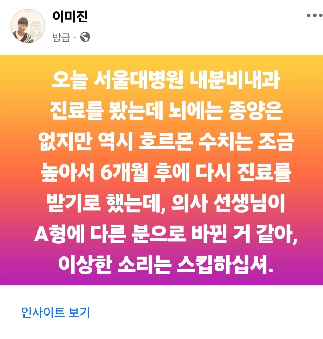 뇌에 이상은 없지만 호르몬 수치가 역시 높다는군요