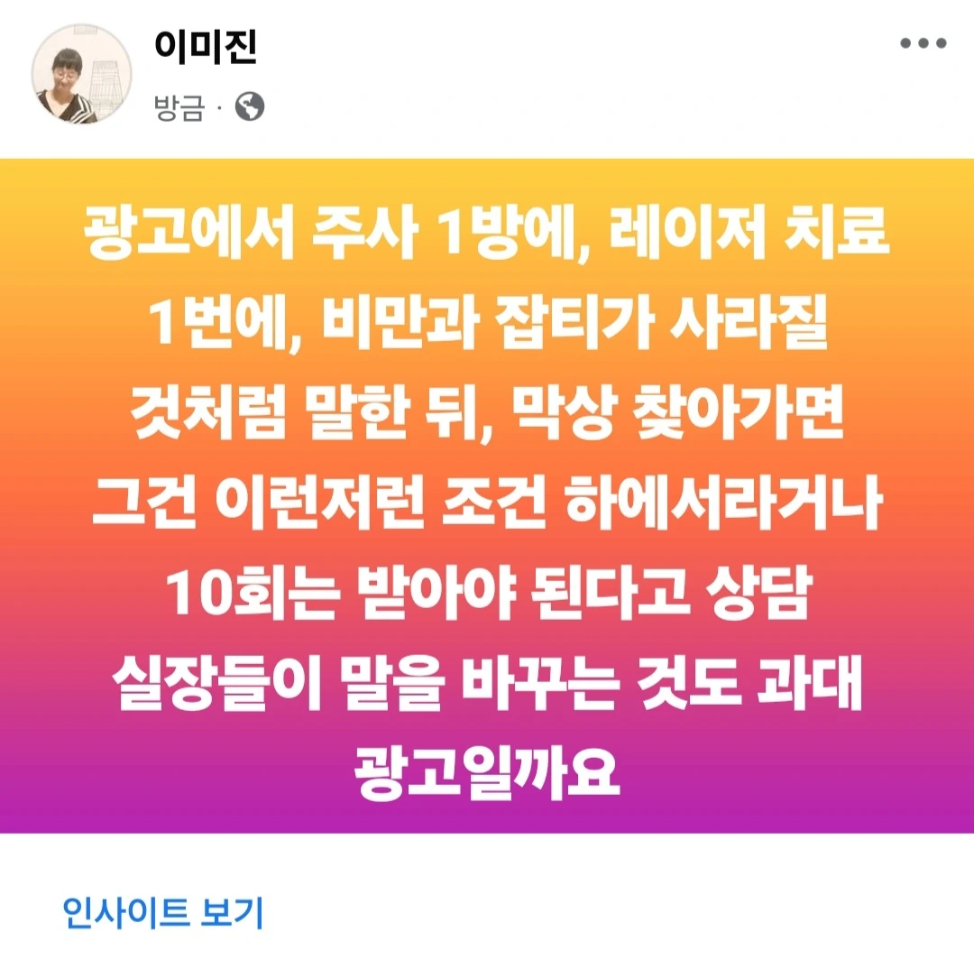 1회만으로 효과 있다고 광고한 뒤 찾아가면 말 바뀌는