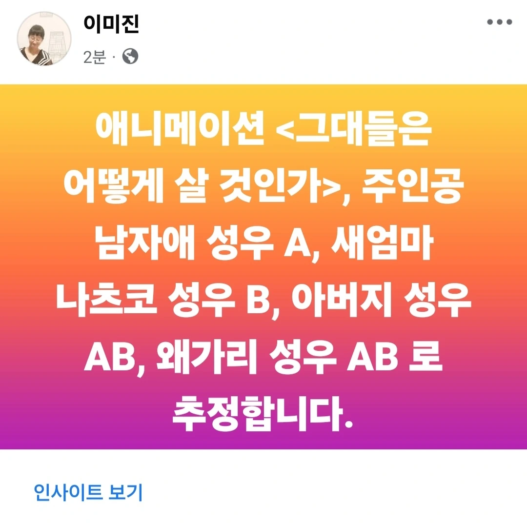 에니메이션 그대들은 어떻게 살 것인가 성우