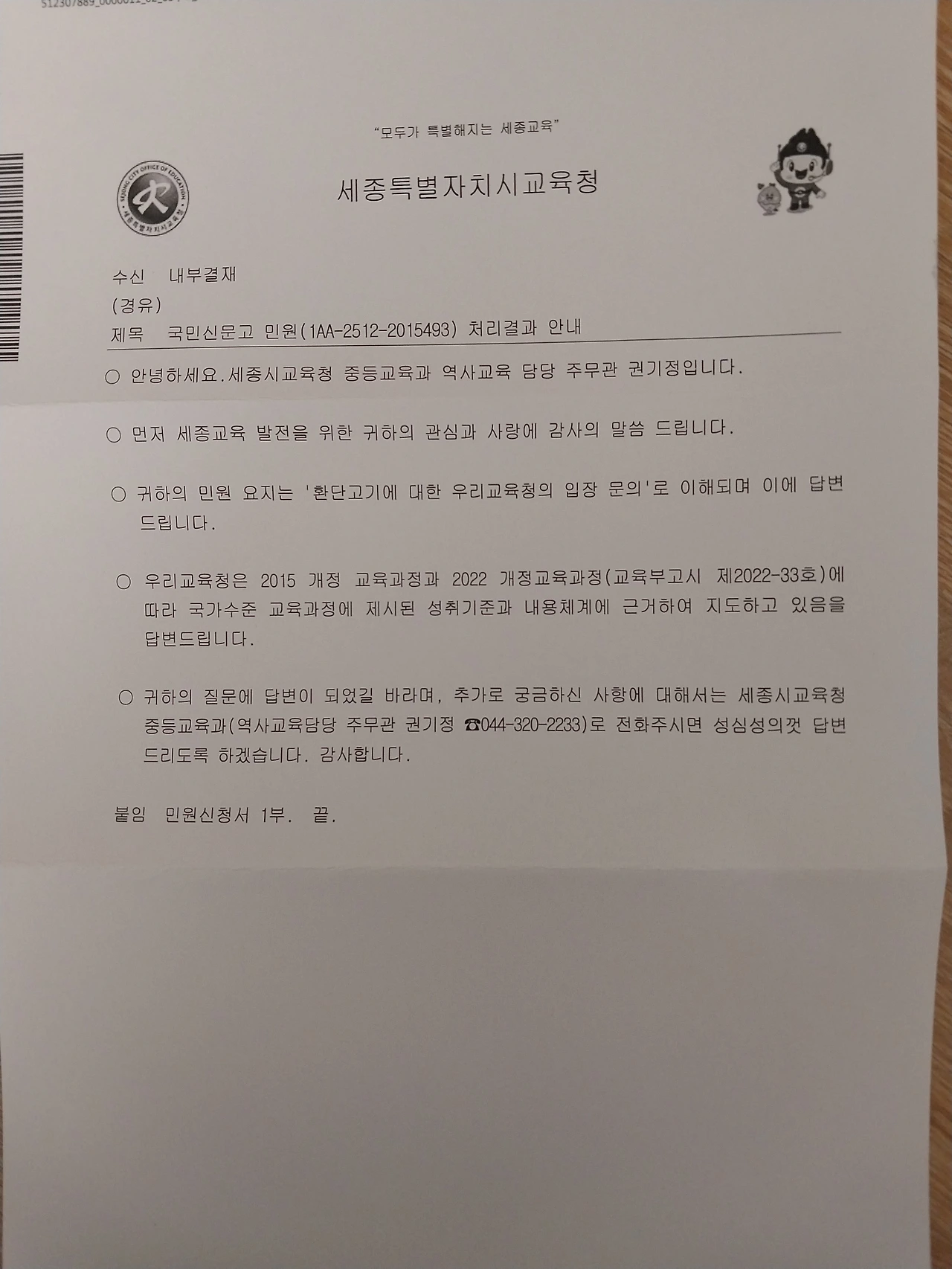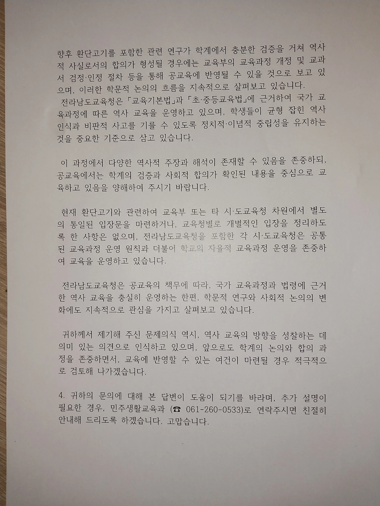 역사의 기본은 교육이며 역사를 가장 필요로 하는 곳도 교육인데, 일단 4개 교육청은 국가 수준 성취기준에도 부합하지 않는다고 하네요.