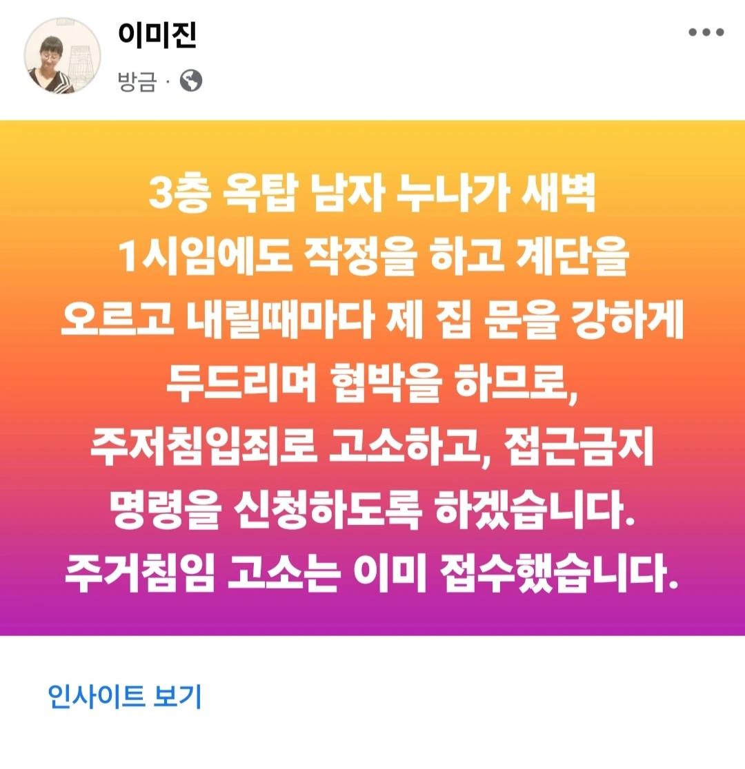 3층 옥탑 누나는 주거침입과 접근금지 신청할 겁니다