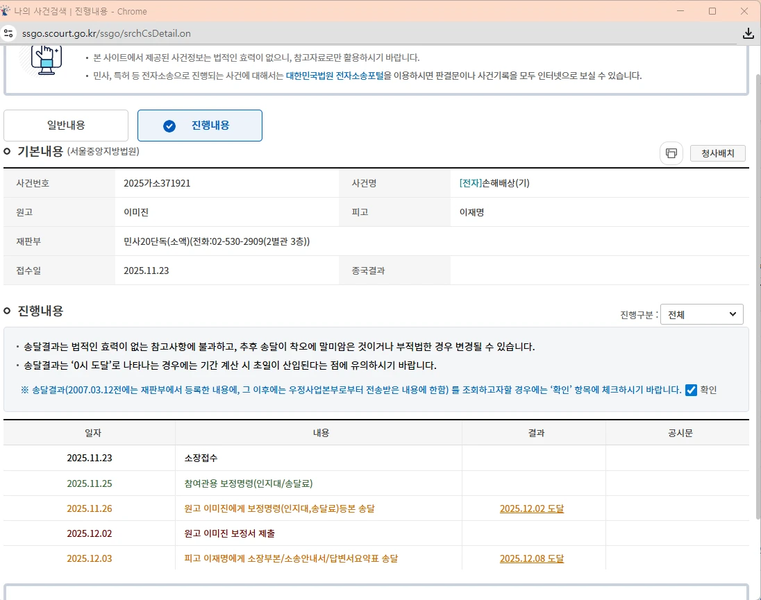 이재명 대통령과의 소송 내용 이름과 서류 송달일 나온 걸로 재차 올리겠으며, 지금까지 박근혜 대통령이나 문재인 대통령, 윤석열 대통령 등 어떤 대통령도 소장을 받고 한 달 안에 답변서를 제출하도록 한 민사소송법을 위반한 경우는 없었다, 소송담보비용을 정하라는 잔인한 답변서라도 제출을 했다, 포스팅을 합죠.