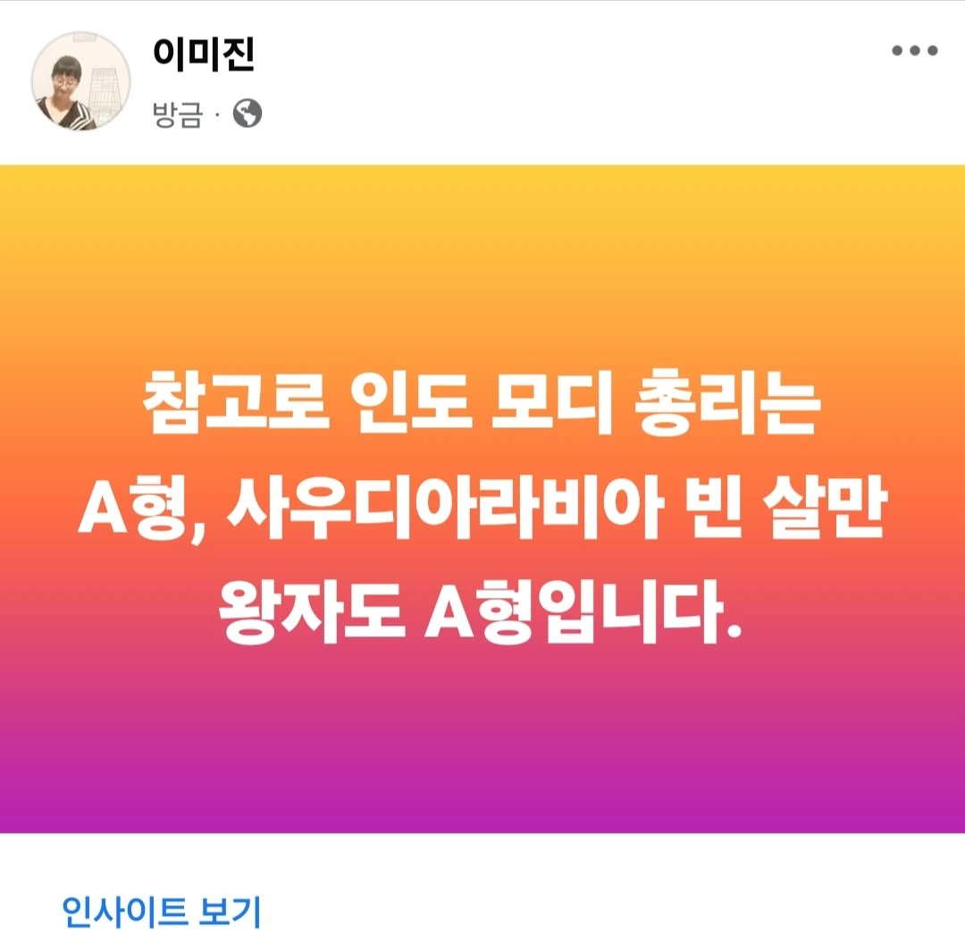 중국 시진핑은 B형, 왕이 외교부장은 AB