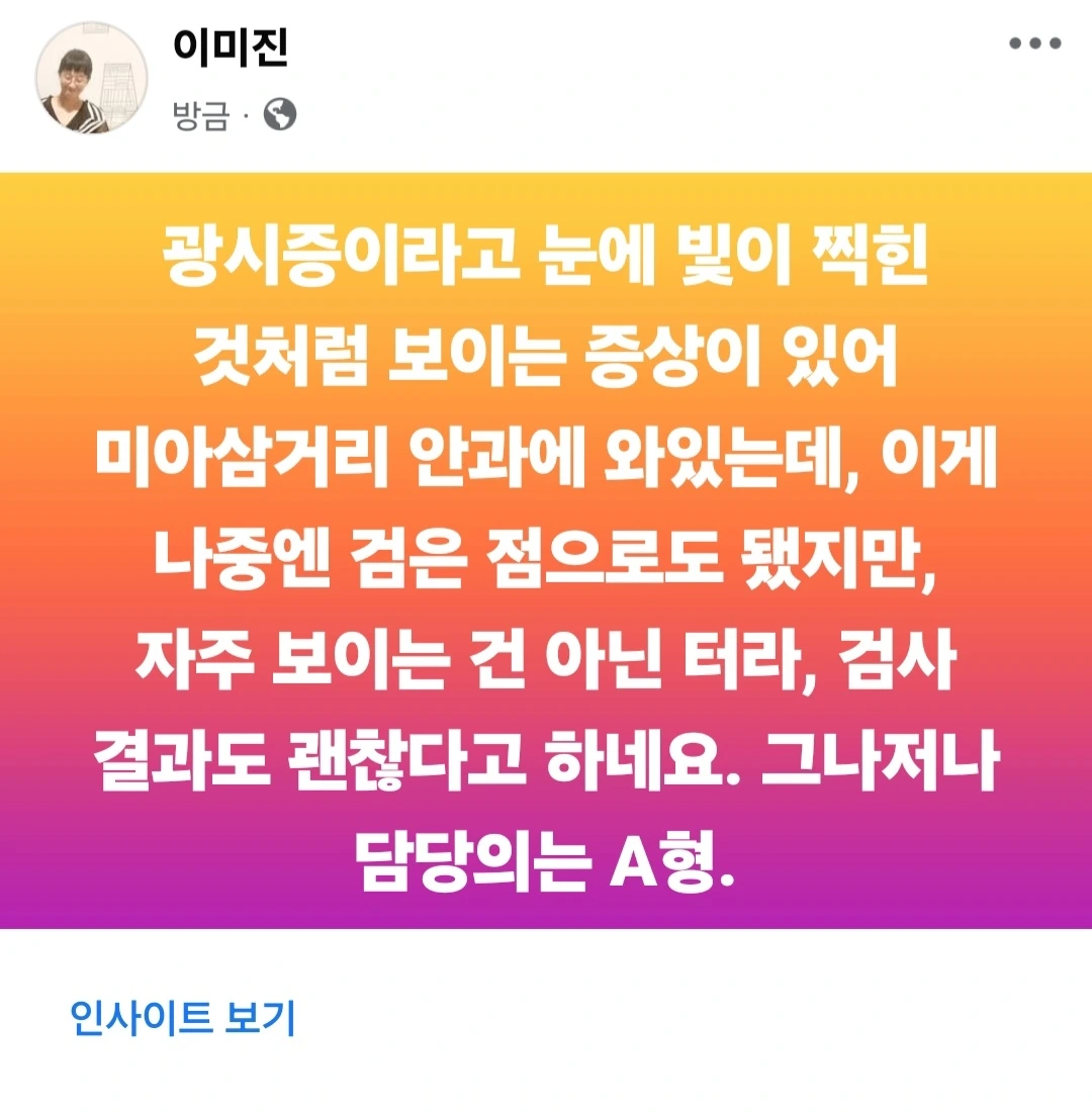 광시증이 있어 미아삼거리 안과에...괜찮답니다.