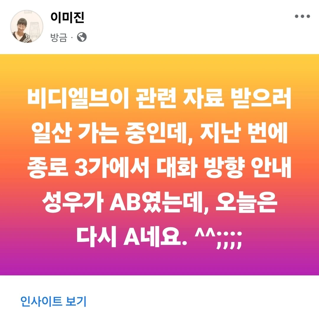 종로 3가에서 대화 방향 성우 다시 A로 바뀜
