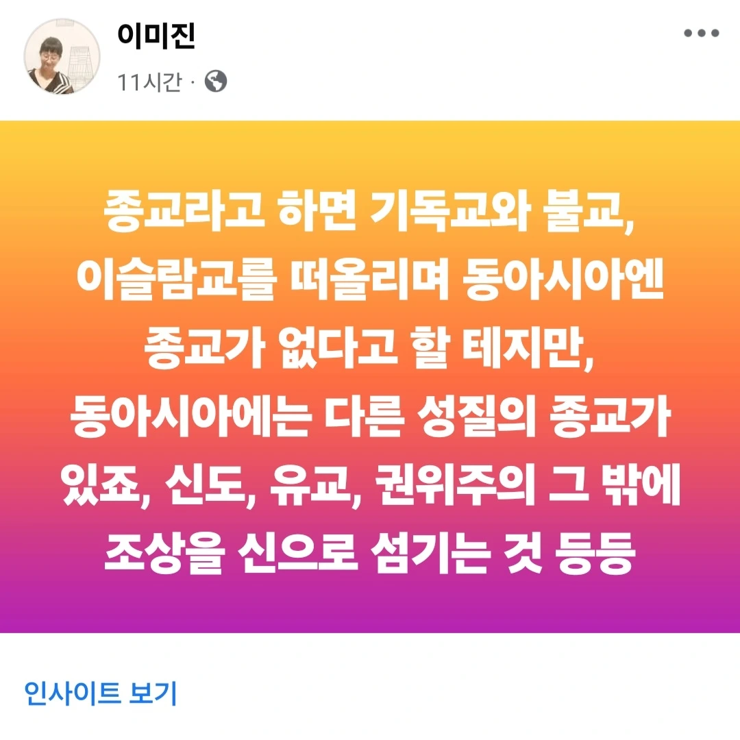 동아시아의 종교는 타 종교와 다른 성질의 종교