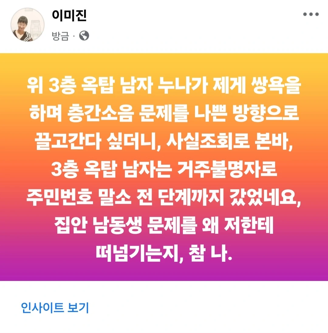 집안 남동생 문제를 나와의 층간소음으로 둔갑시킨 악질 누나