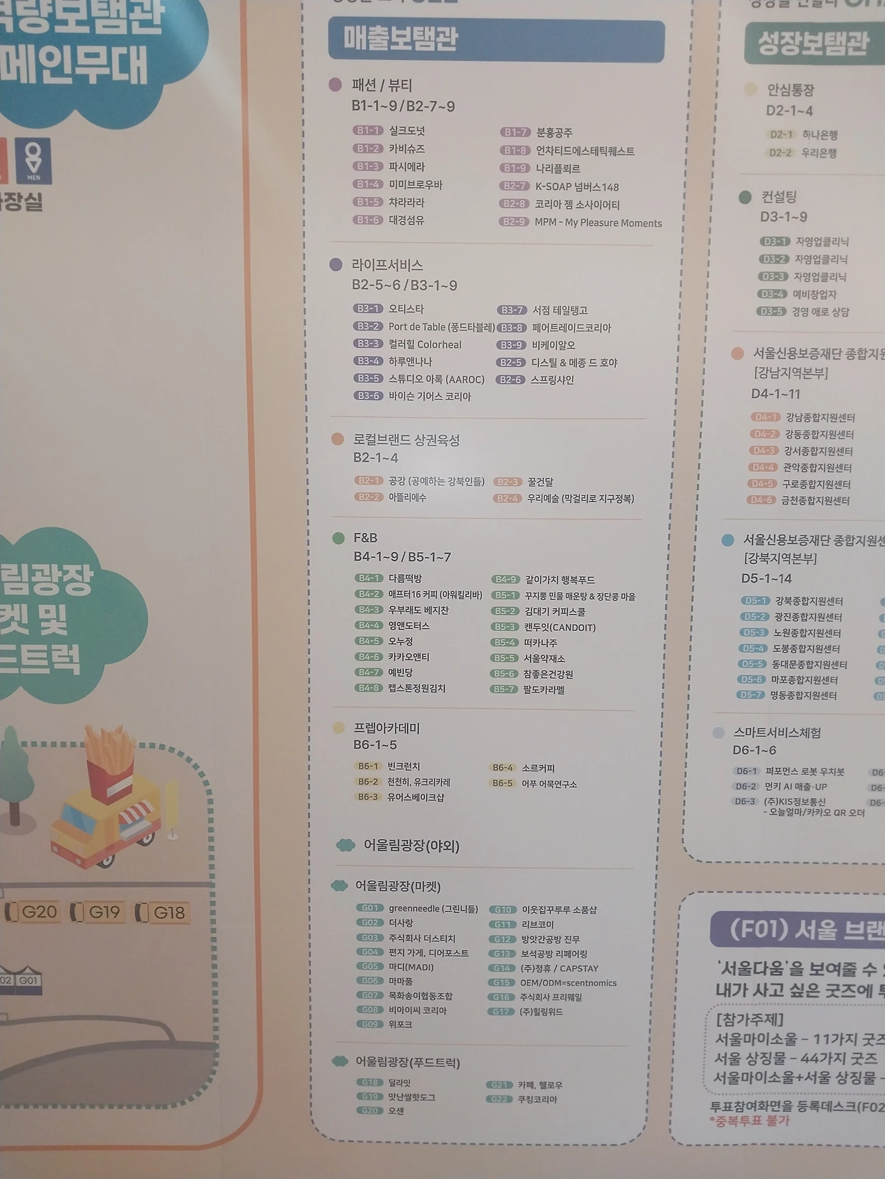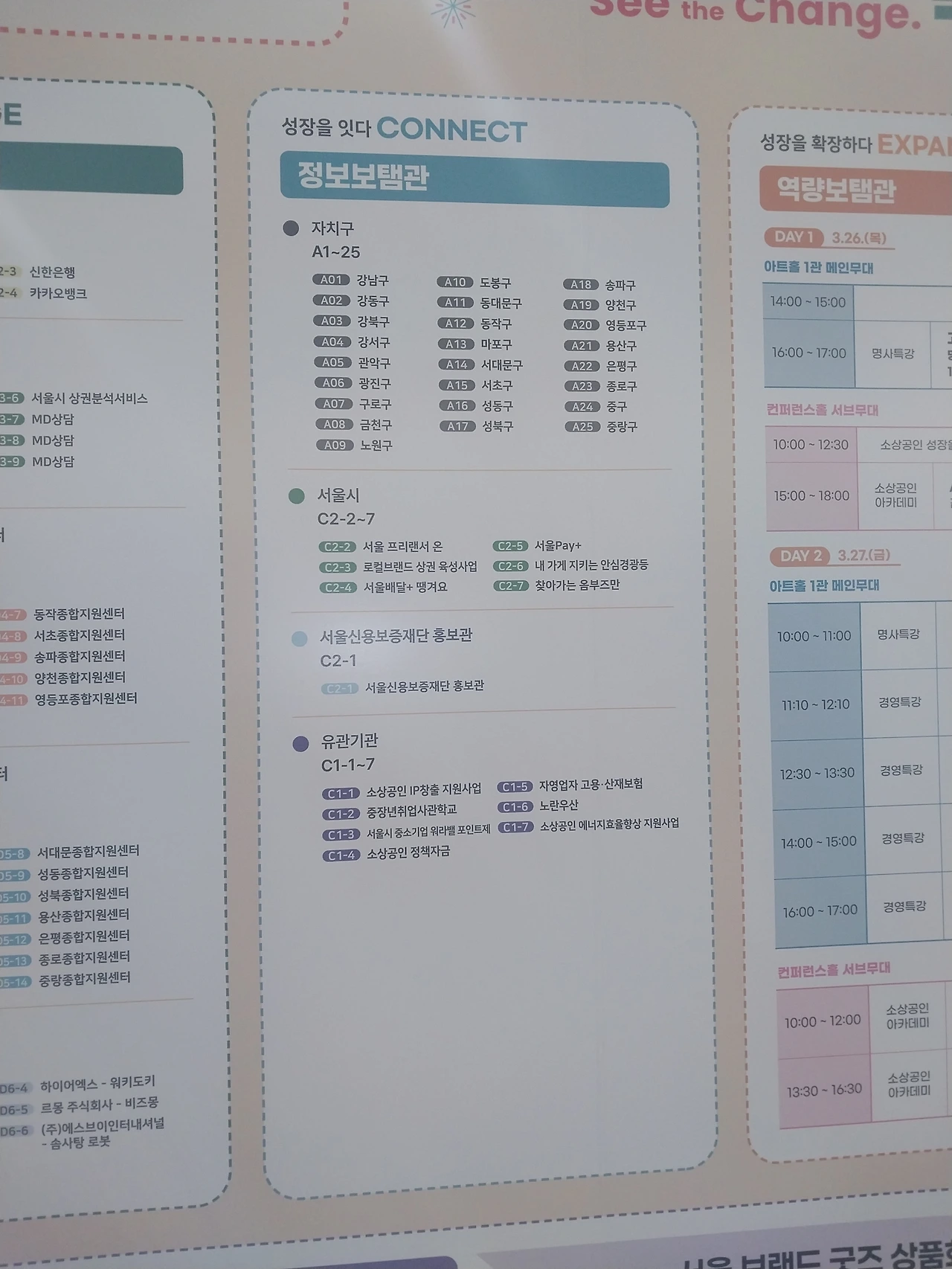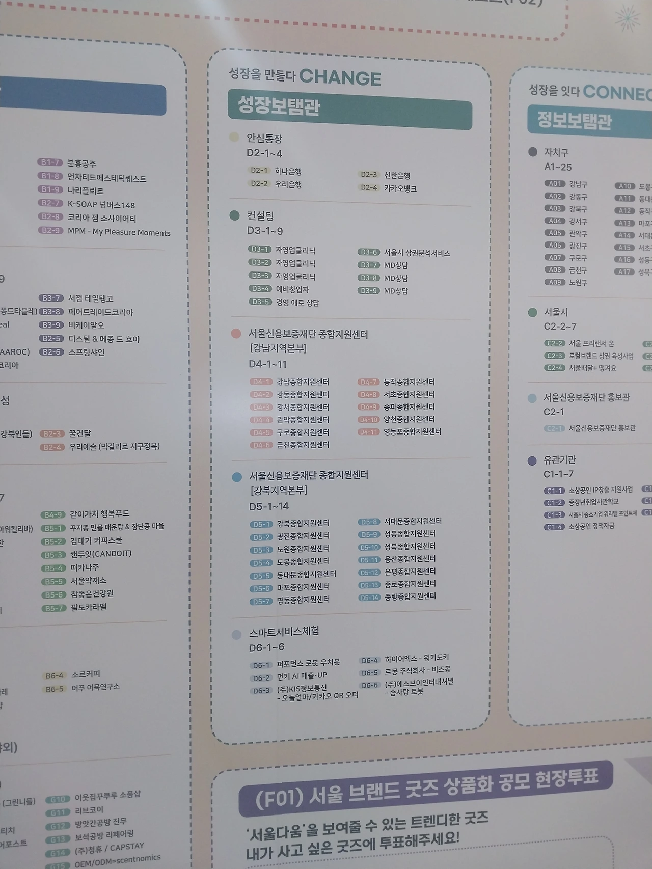 대부분의 부스는 강남구, 광진구, 양천구 등 구청이 지원사업을 갖고 차지하고 있었고, 그 외 서울신용보증재단 등 소상공인 보증서 발급 업체, 나머지는 소상공 업체들이 나왔죠.