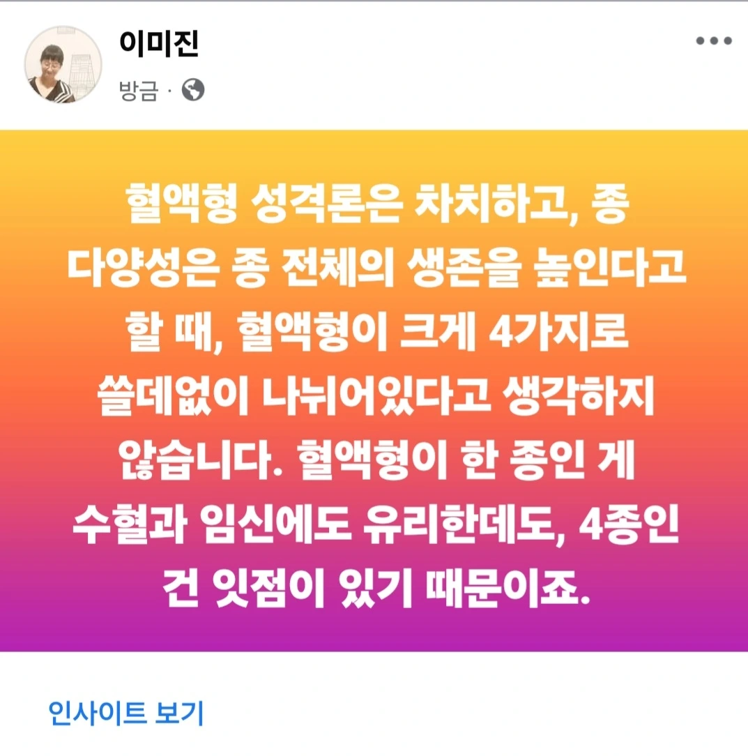 아무 잇점이 없다면 혈액형은 왜 하나가 아닐까