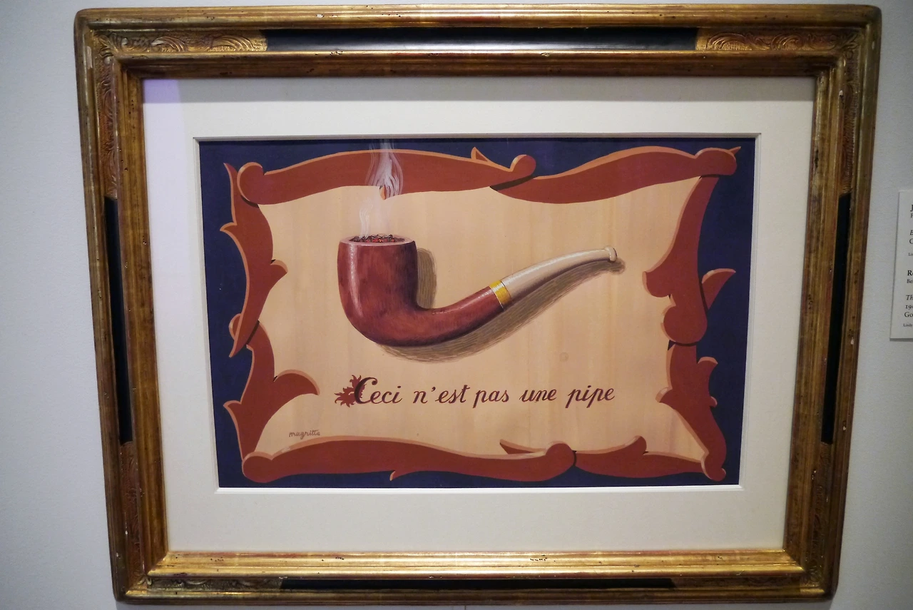 위 작품이 주는 메시지는 간단하다. 담배를 피울 때 사용하는 파이프다. 그리고 그 밑에는 불어로 “Ceci n'est pas une pipe(이것은 파이프가 아니다).” 파이프를 그려놓고 이것은 파이프가 아니다란 의미는 파이프 그림을 그린 것이지 실제의 파이프는 아니다.라는 철학적 사고를 감상자들에게 요구하는 등 그림 안에도 다양한 철학을 담아내는 그림을 그린다. 이런 작업을 일컬어 이미지의 반역(모순)이라고 불린다.