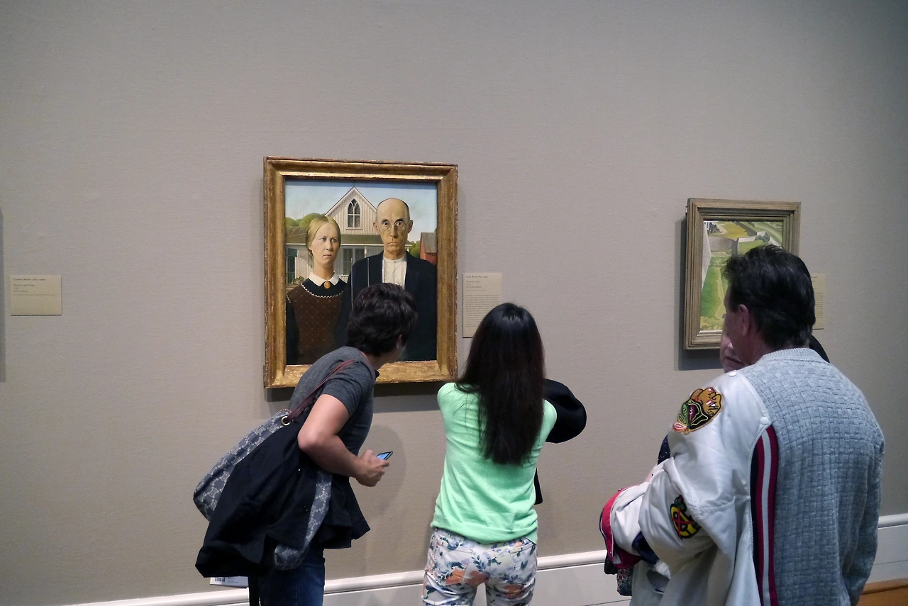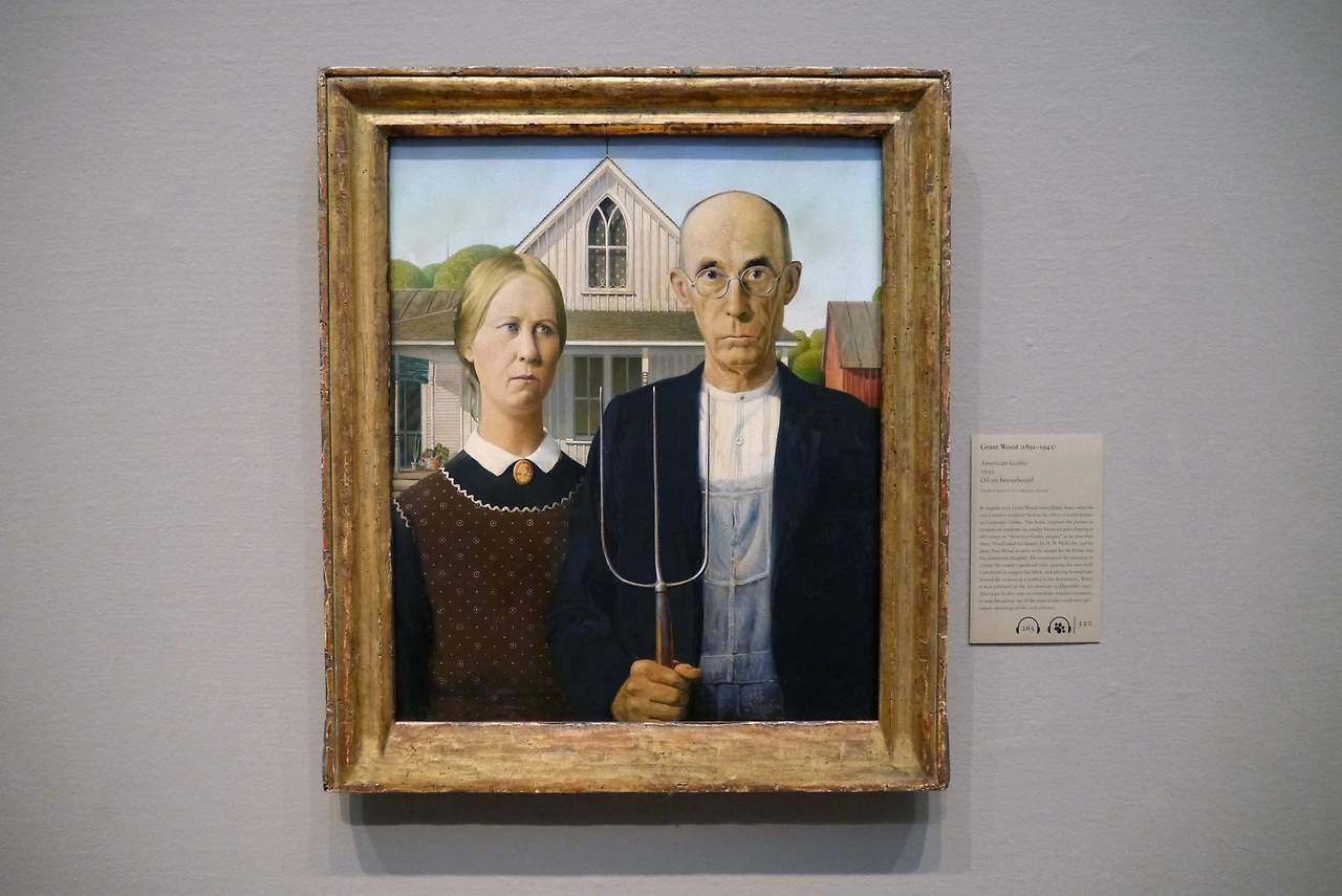 <미국식 고딕>(1930)을 가리켜 단순한 '수직 구도의 습작'이라고 말했지만, 이 작품은 실제로 대단한 평판을 얻었다. 우드의 누이인 낸과 치과의사를 모델로 그린 이 작품은 19세기 미국의 전형적인 '카펜터 고딕식' 농가를 배경으로 서 있는 엄숙한 표정의 두 남녀의 모습을 간결하고 냉정한 사실주의 기법으로 그리고 있다. 이 그림은 미국 회화사상 가장 아이콘적이며 가장 많이 패러디된 작품 중 하나이다.