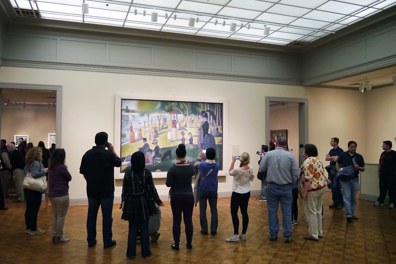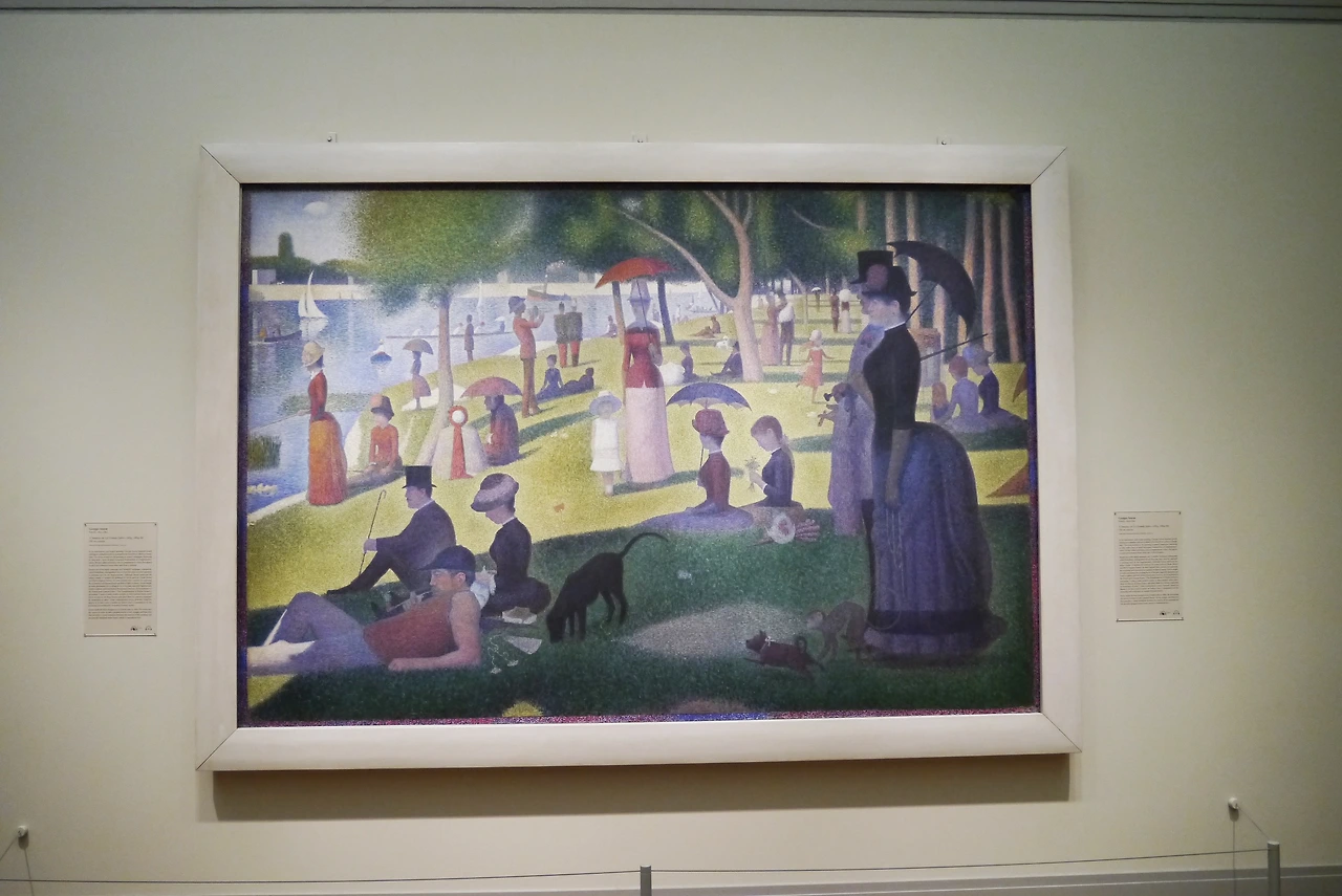 시카고 미술관의 대표적인 작품 중 하나인 조르주 쇠라의 그랑 자트 섬의 일요일 오후 1884.